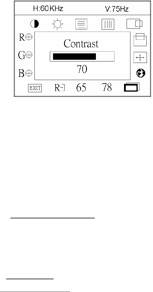 Contrast, Brightness, Focus, Clock,H-position, V-position, Language, Recall-7800, Recall-6500, Reset,