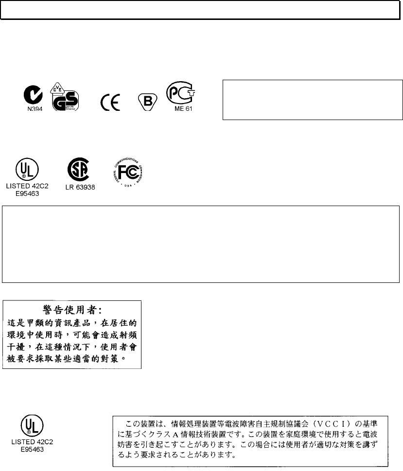 Regulatory Agency Approvals and Radio Frequency Warnings