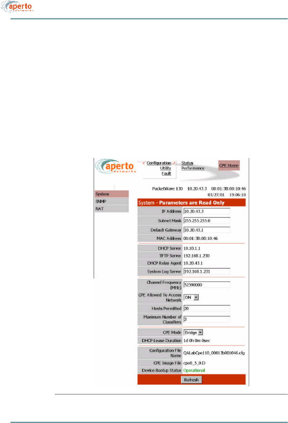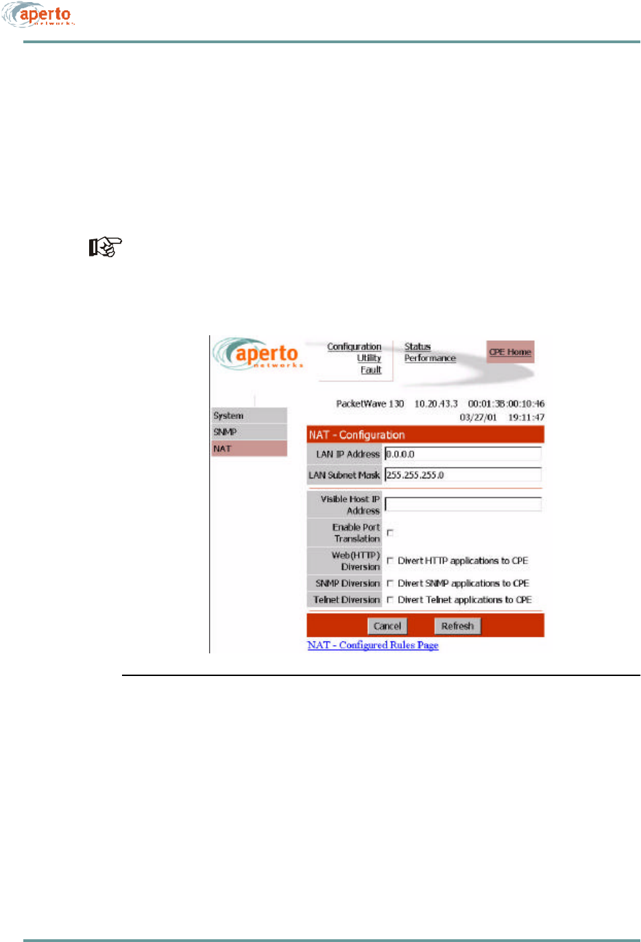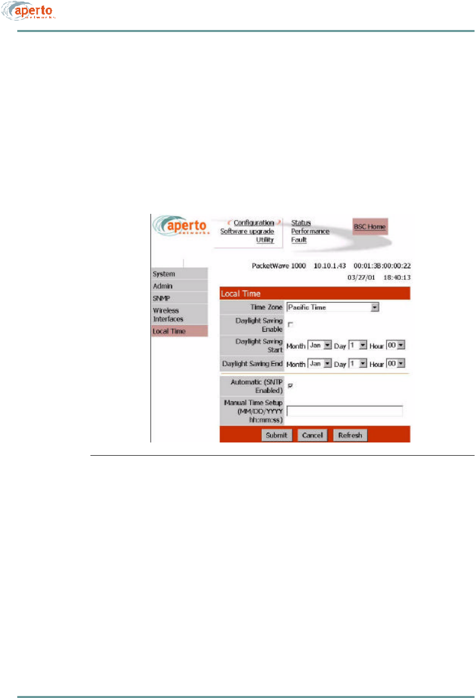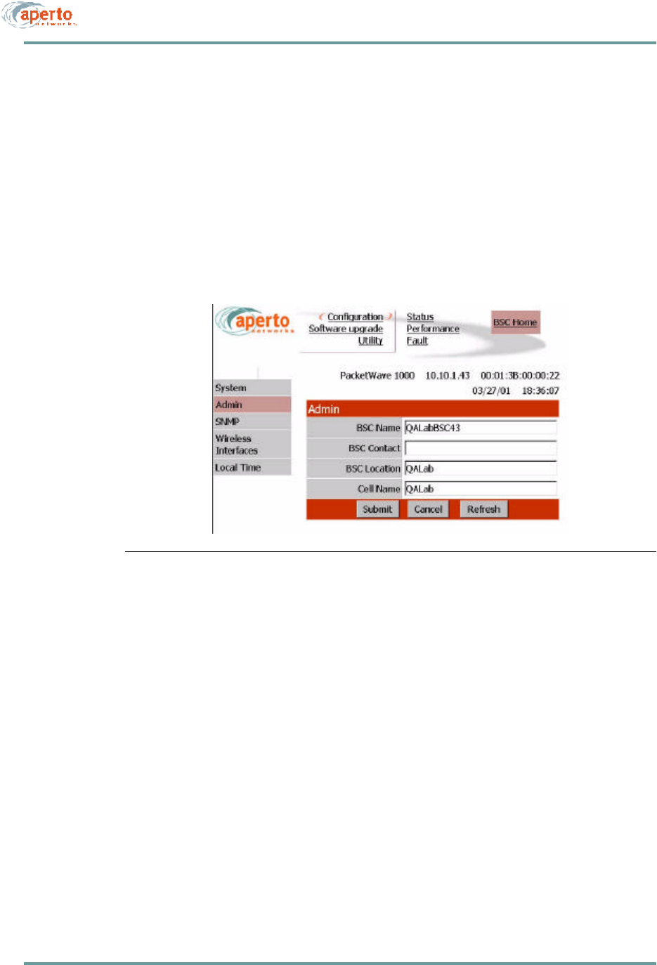 Aperto Networks BR1000-A1 PacketWave 1000 Series MMDS Base Station User Manual PacketWave 1000 Manual Rev A July 2001