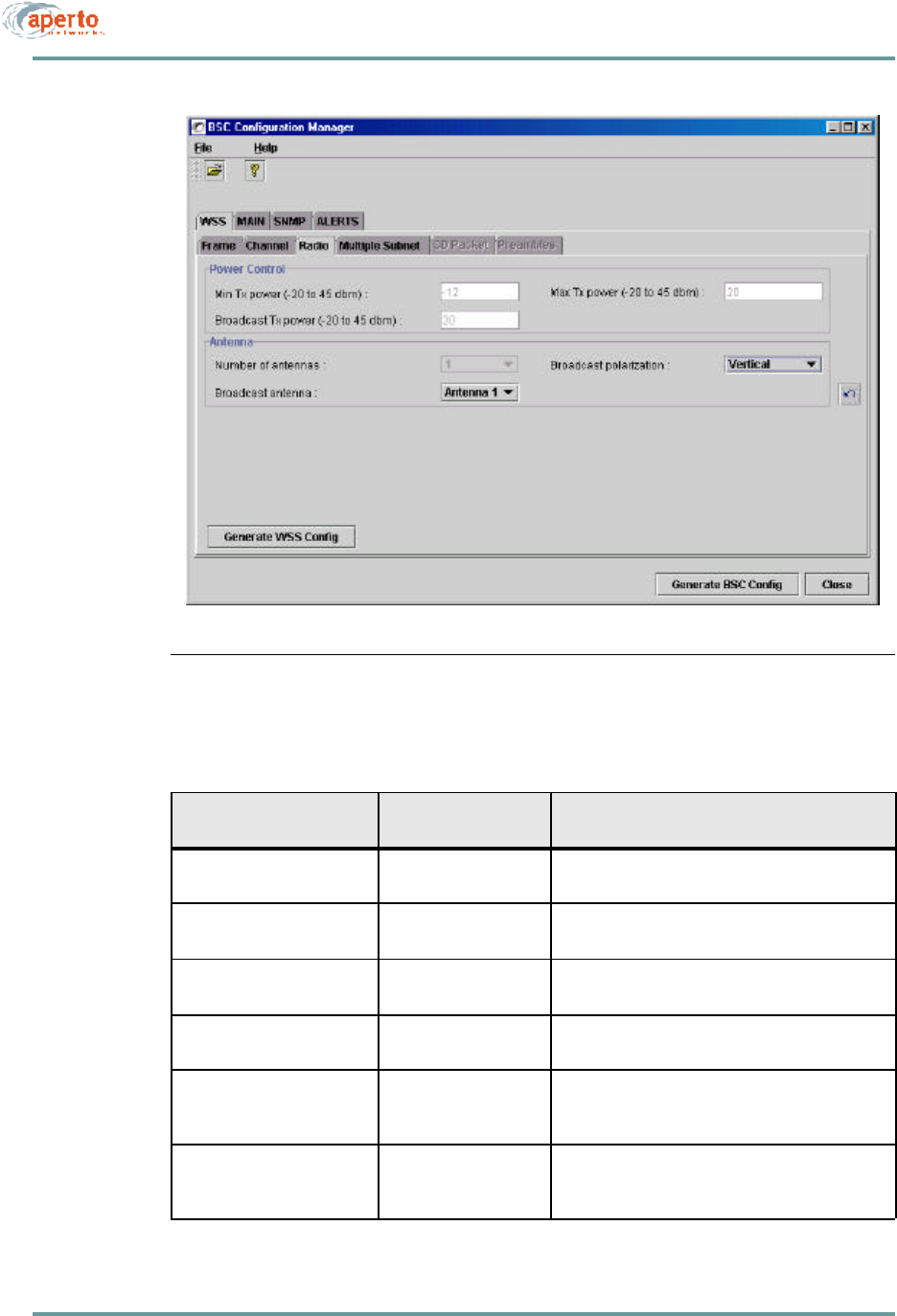 Click on the Radio tab so that the screen illustrated in Figure6-5 is displayed. Specify