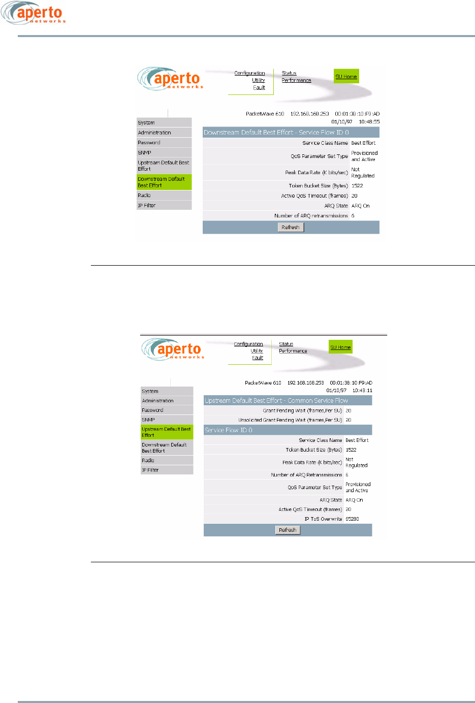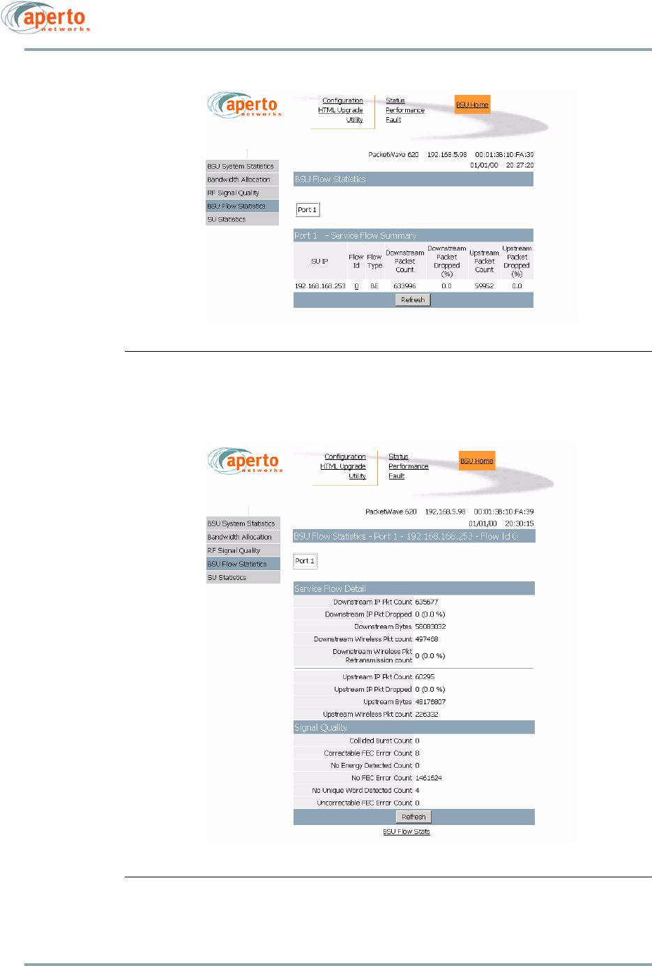BSU Flow Statistics Gives performance statistics for all defined service flows.