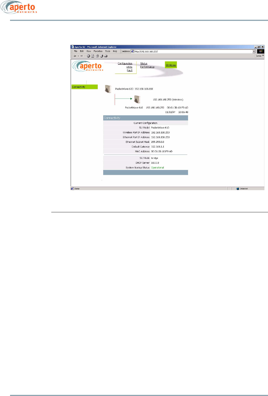 The connectivity view provides a quick way to identify the configured BSU/SU, and to