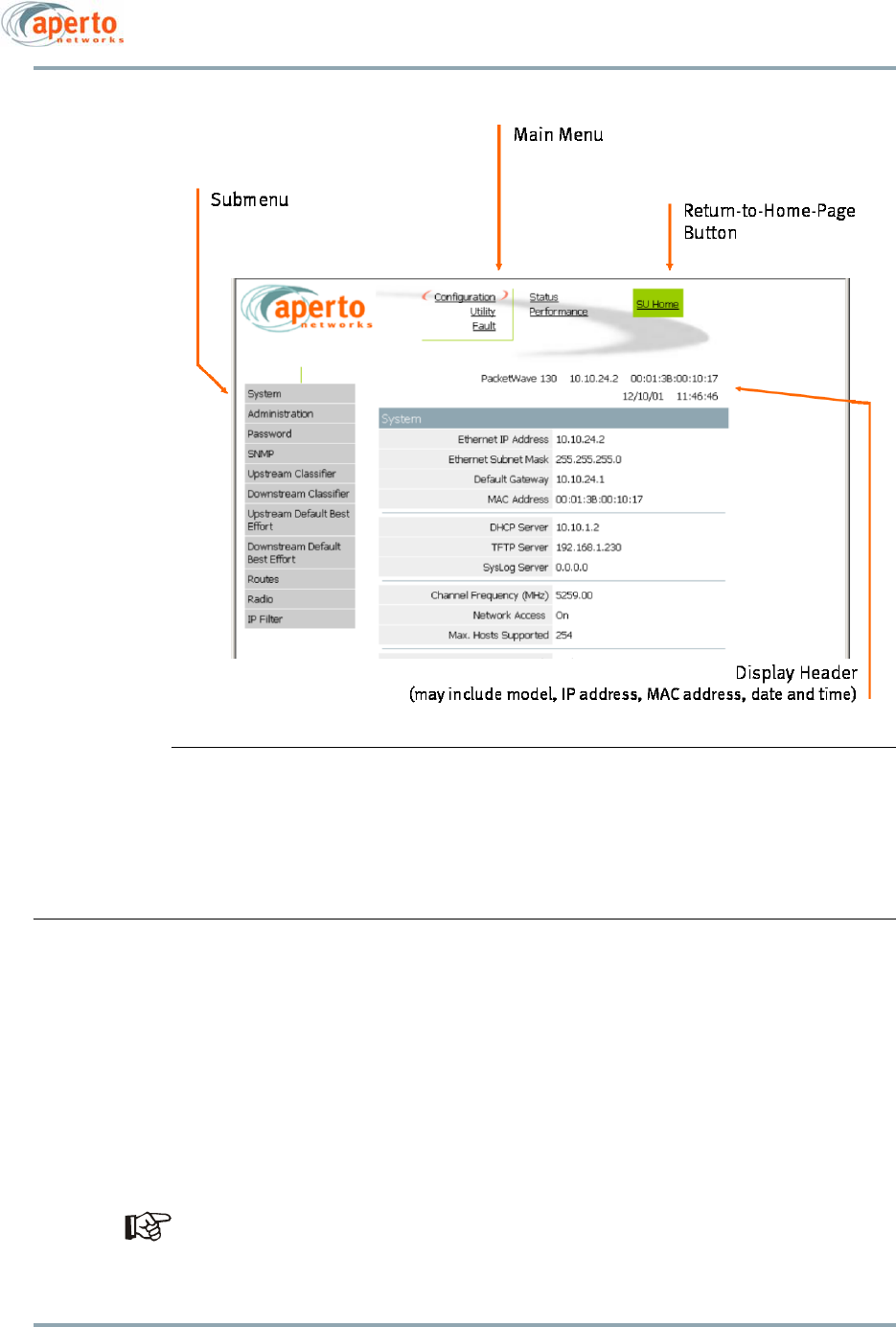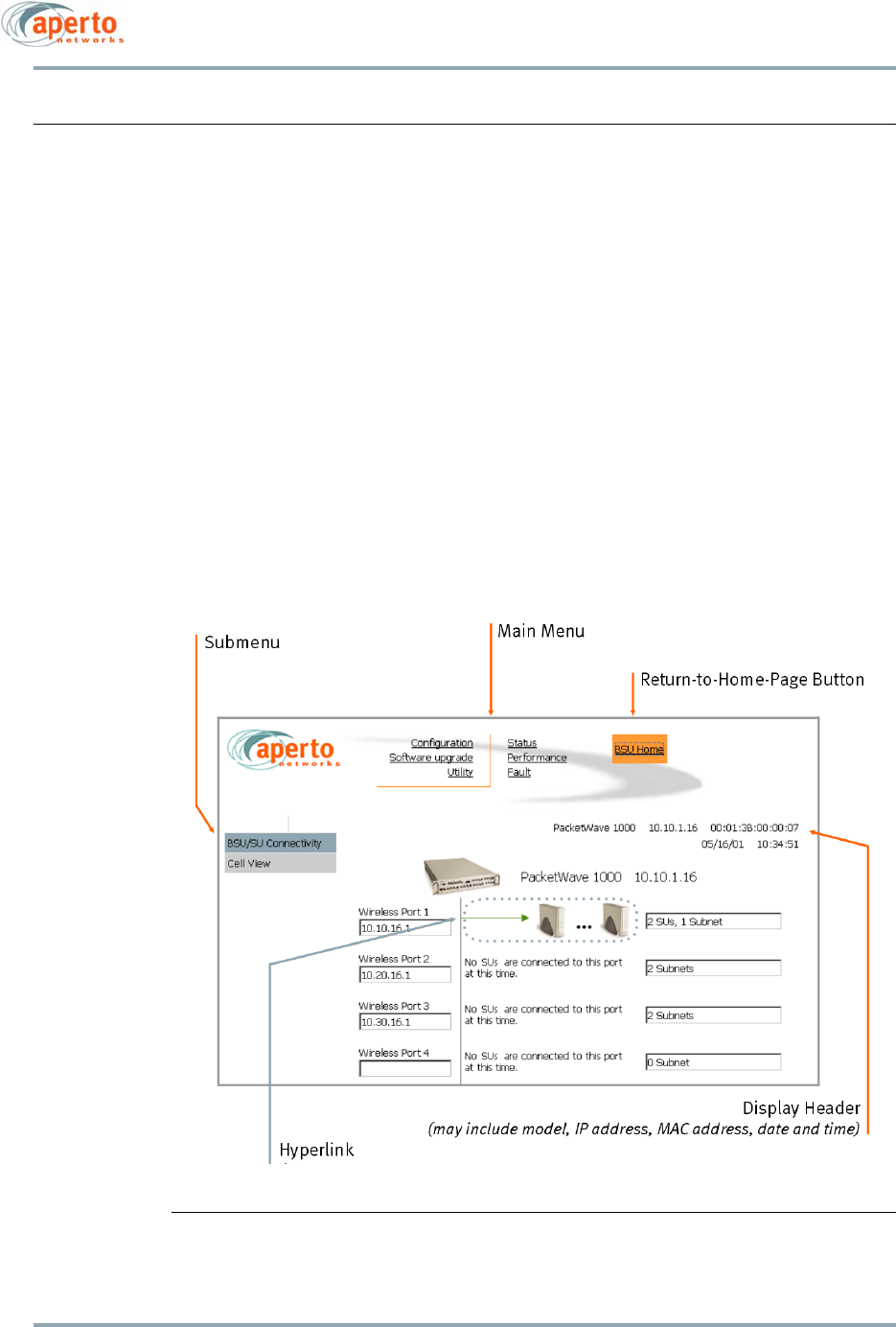 The BSU and SU Web GUI pages share the basic elements identified in Figure 3-2.