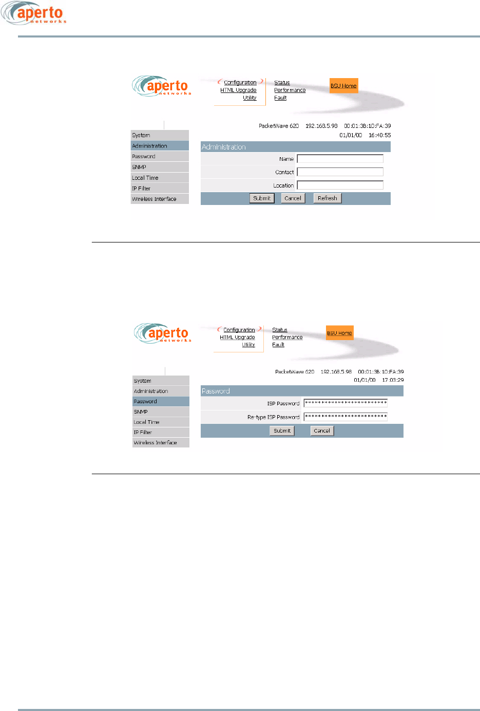 clicked. Clicking Submit affects only the current operation of the BSU or SU. The corre-