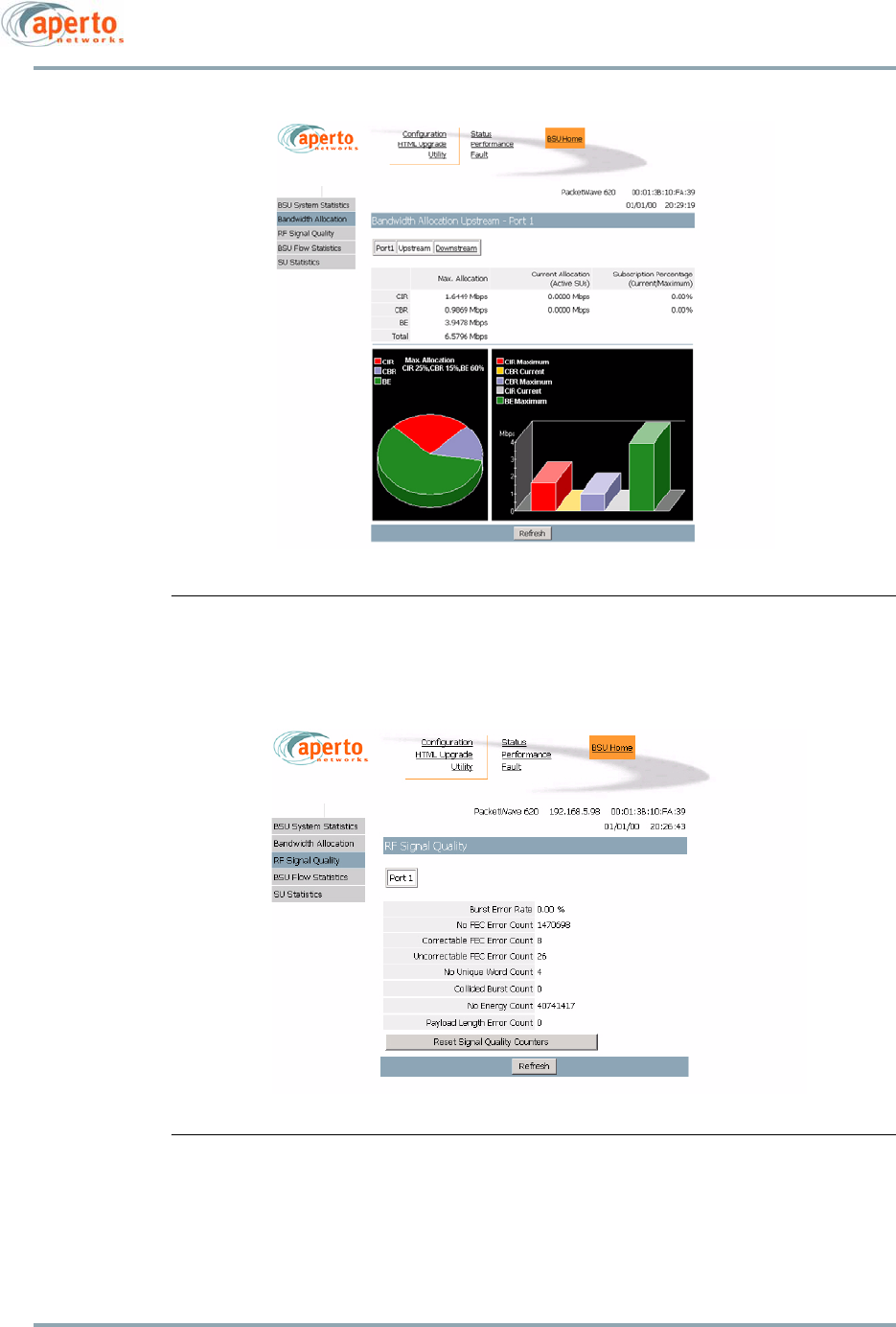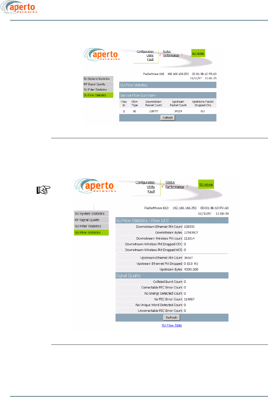BSU Flow Statistics Gives performance statistics for all defined service flows.