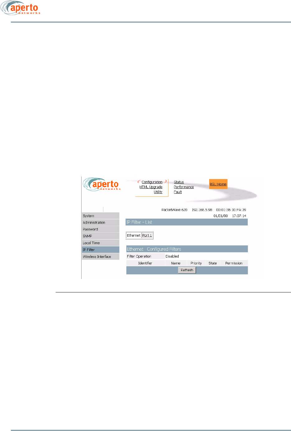 IP Filter Per Ethernet/WSS: List of all defined IP filters. Hyperlinks