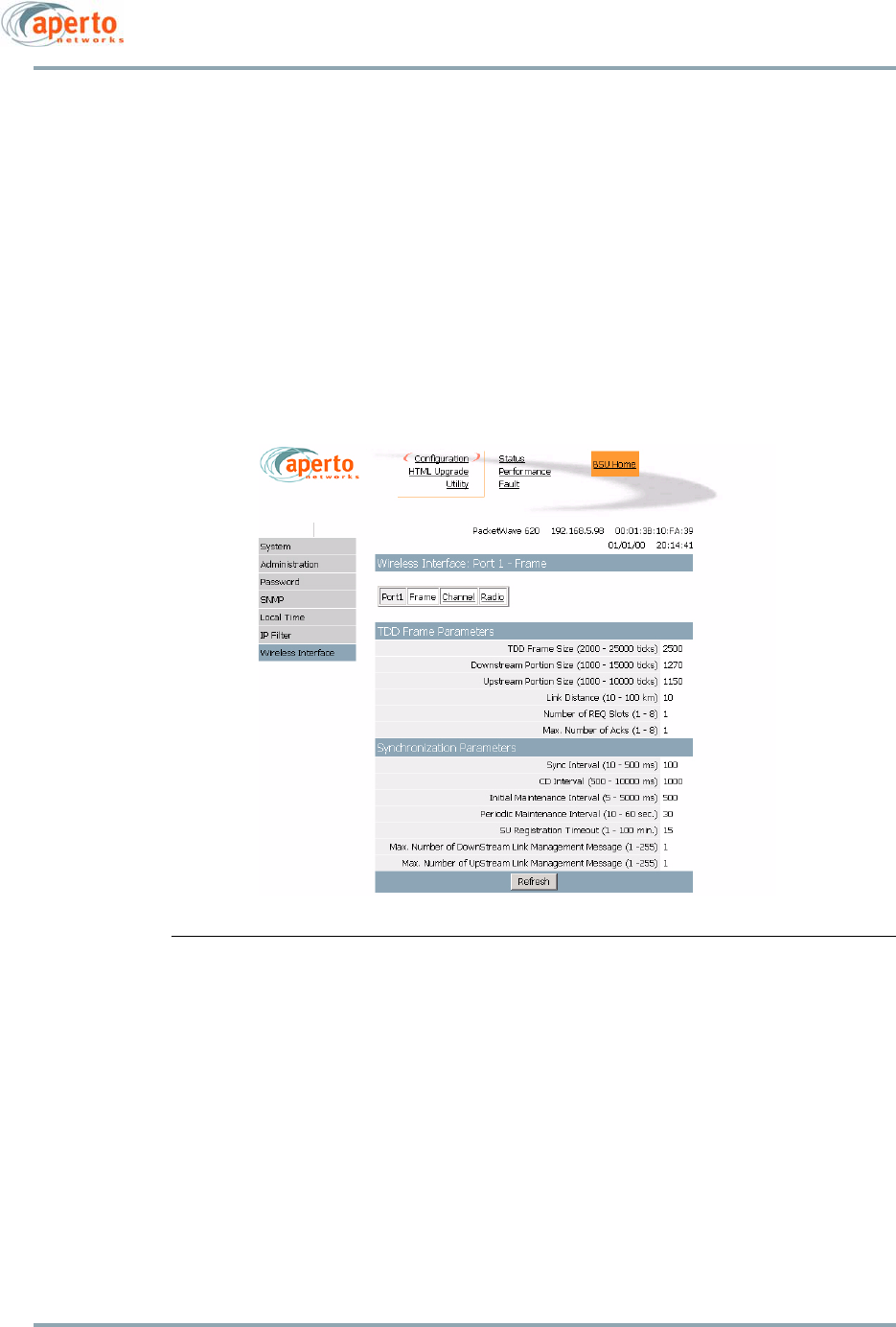 Wireless Interface Per WSS: Configuration pages for Frame, Channel, Radio.