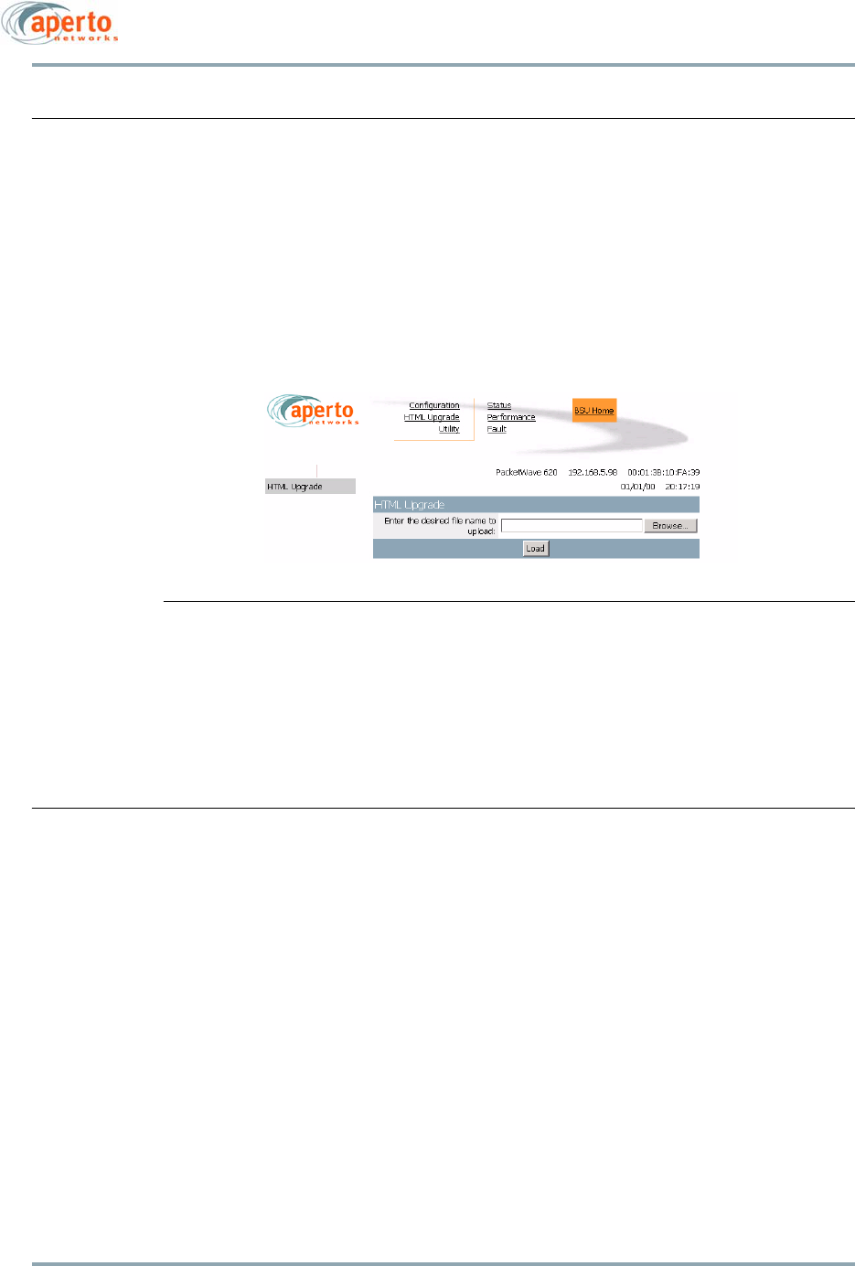 HTML Upgrade HTML Upgrade Uploads new HTML pages for Web GUI.