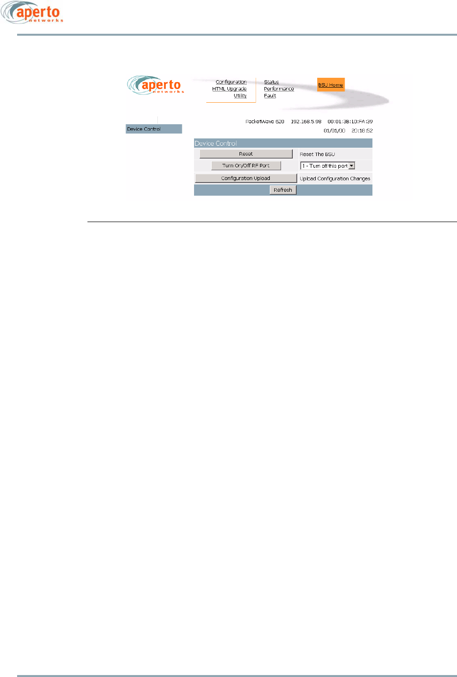 Upload Configuration button on the BSU or SU Device Control Utility page. Clicking the