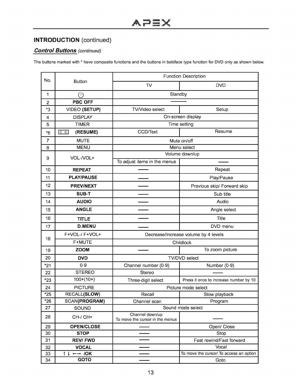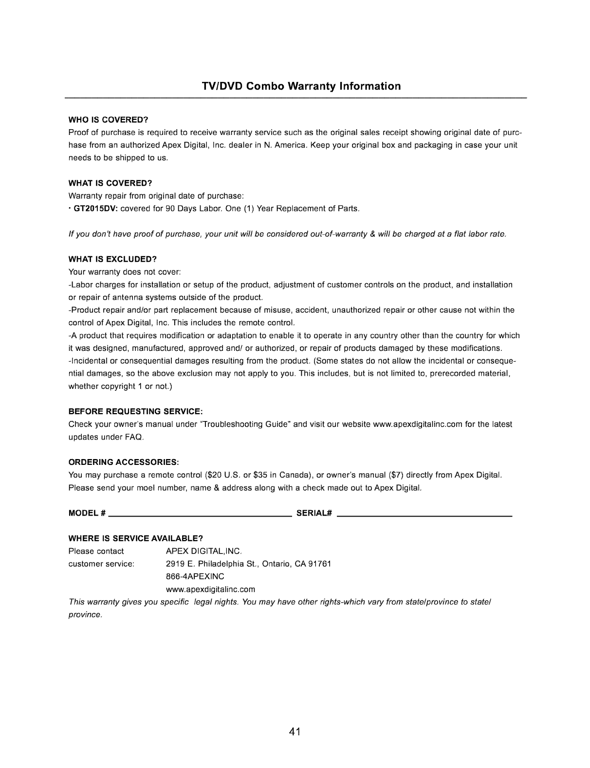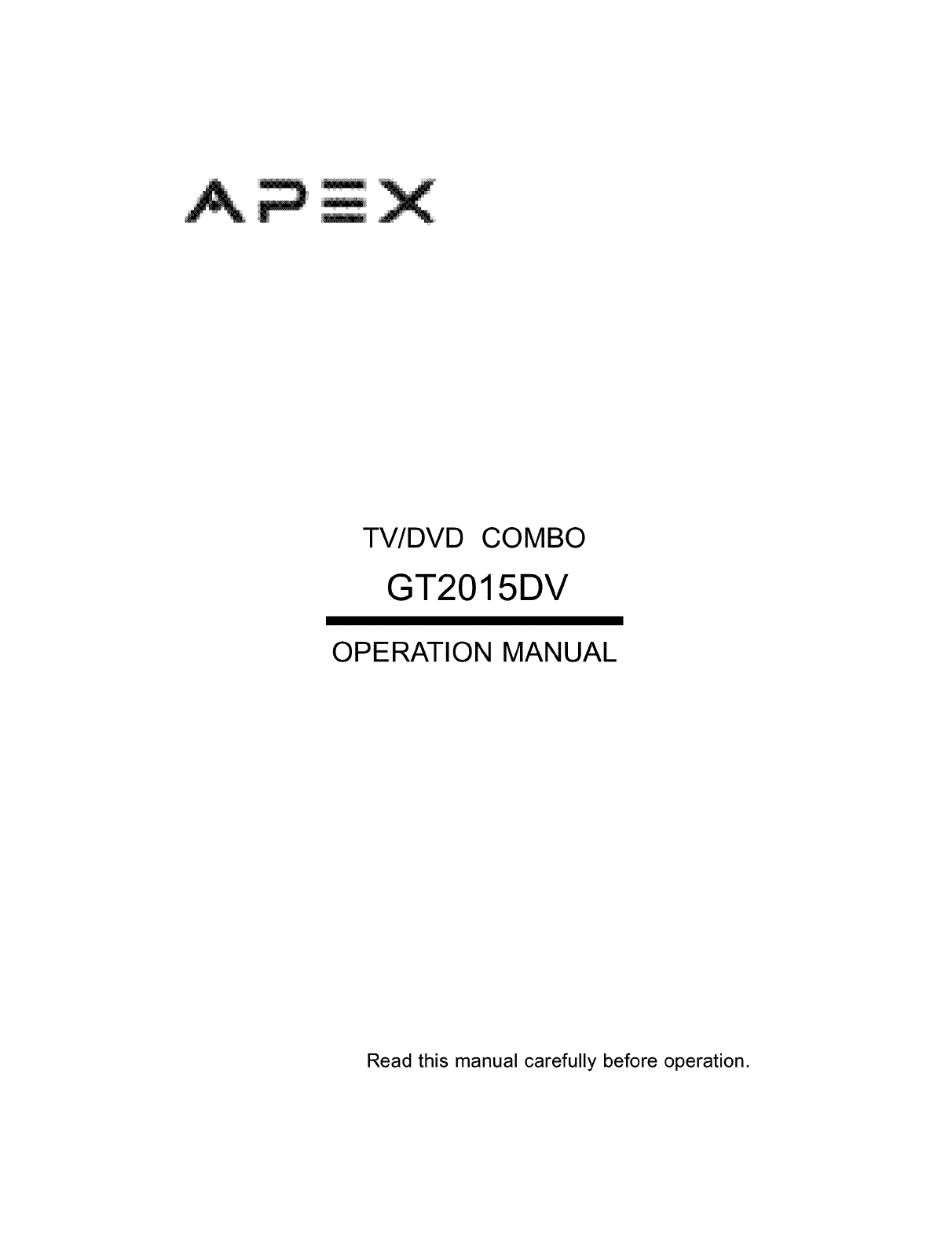 User Manual: Apex GT2015DV GT2015DV APEX TV/DVD COMBO - Manuals and Guides View the owners manual for your APEX TV/DVD COMBO #GT2015DV. Home:Electronics Parts:Apex Parts:Apex TV/DVD COMBO Manual