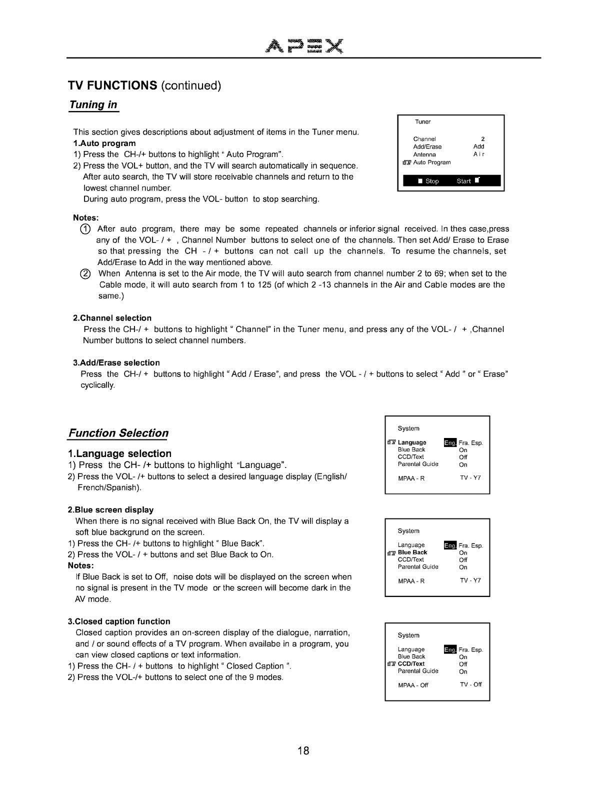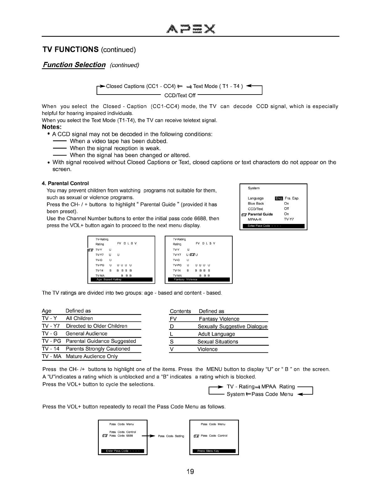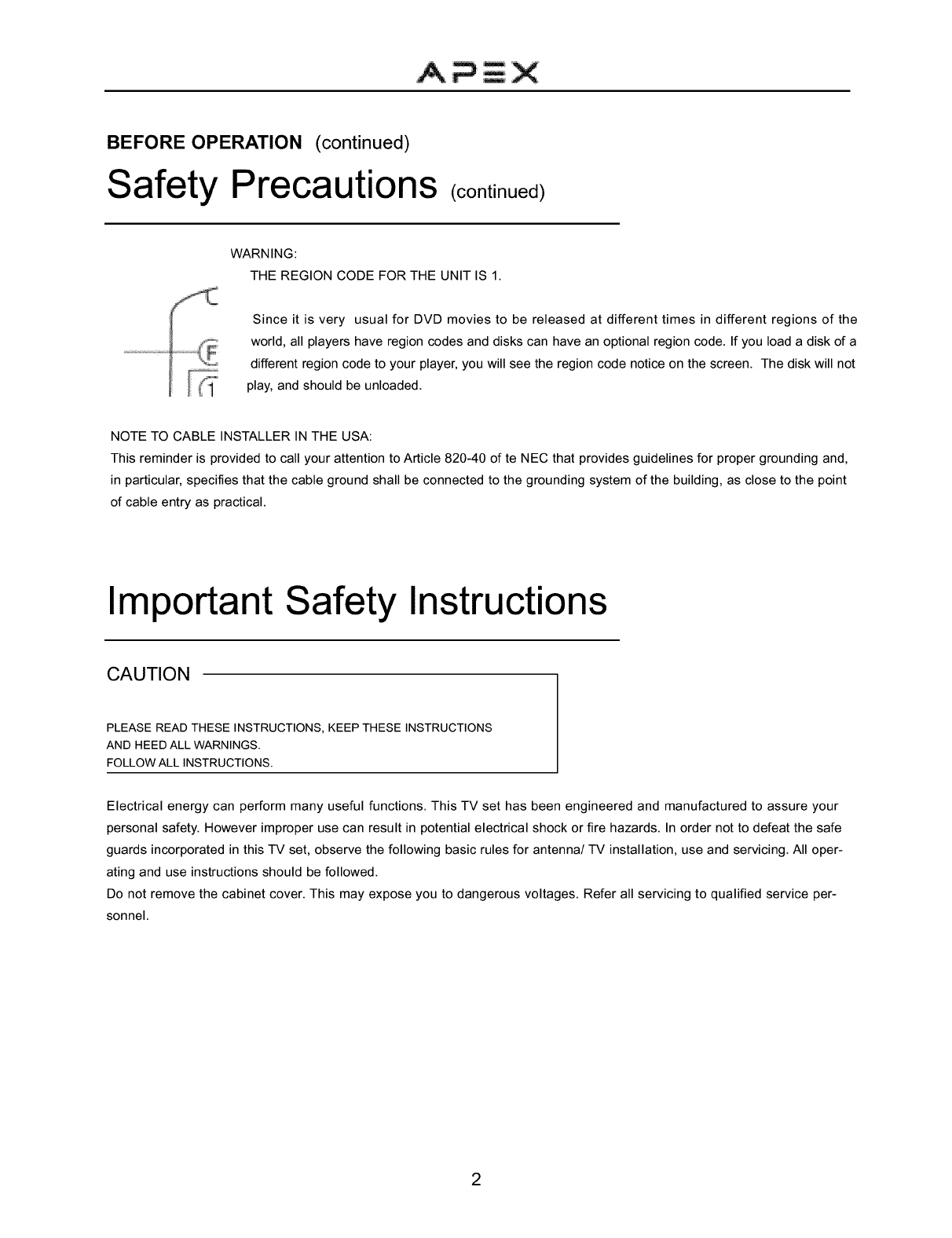 APEX TV/VCR or DVD Combo Manual L0208237 APEX TV/VCR or DVD Combo Owner's Manual, APEX TV/VCR or DVD Combo installation guides