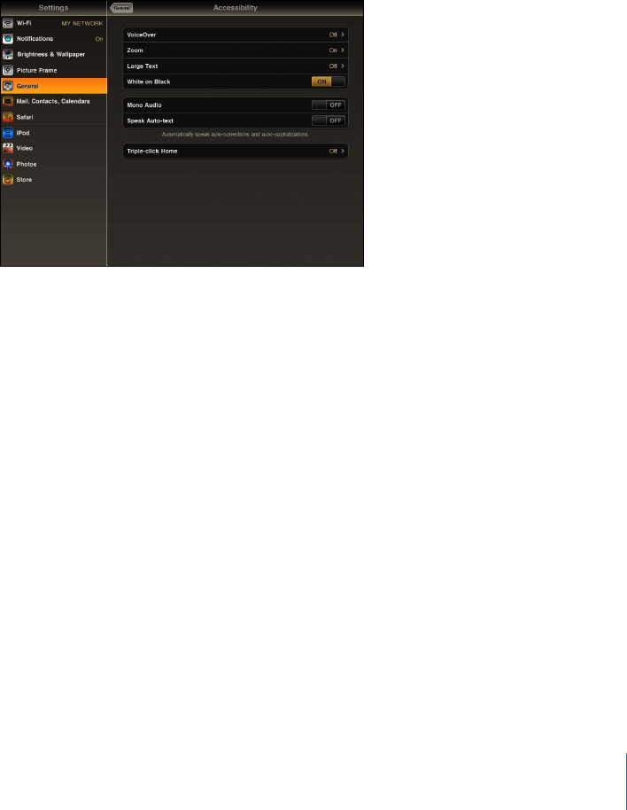 Many standard features available on iPad also help make it accessible to all users,