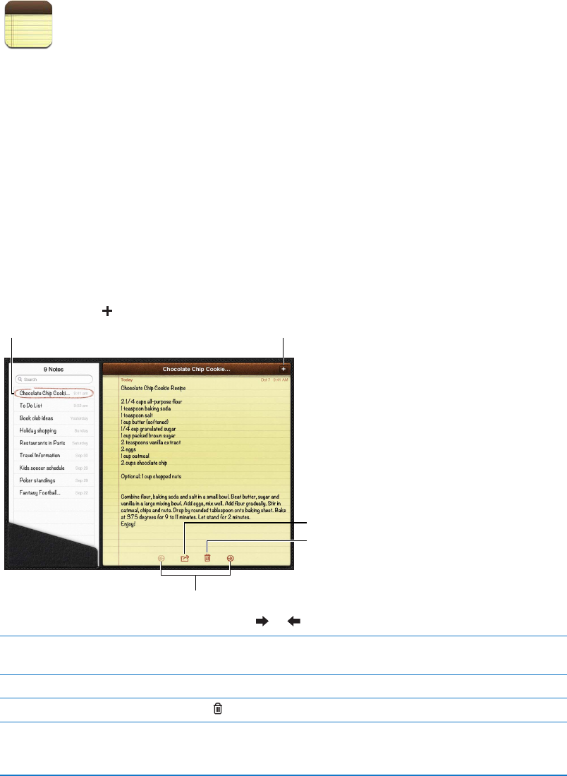 To email a note, iPad must be set up for email. See “Sending mail” on page 44.
