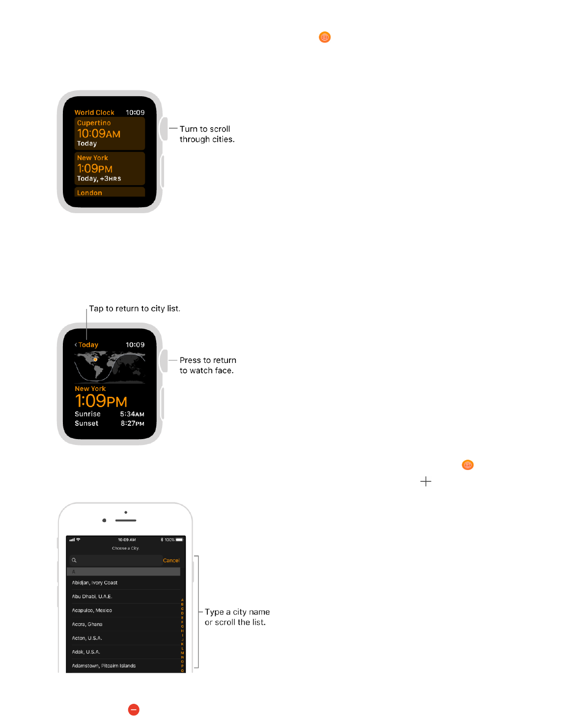 Remove a city from World Clock. MC%,&/)%&!"#(1&'CC&#,&+K)#,%I&/'C&D#*"8&!"#(1I&/'C
