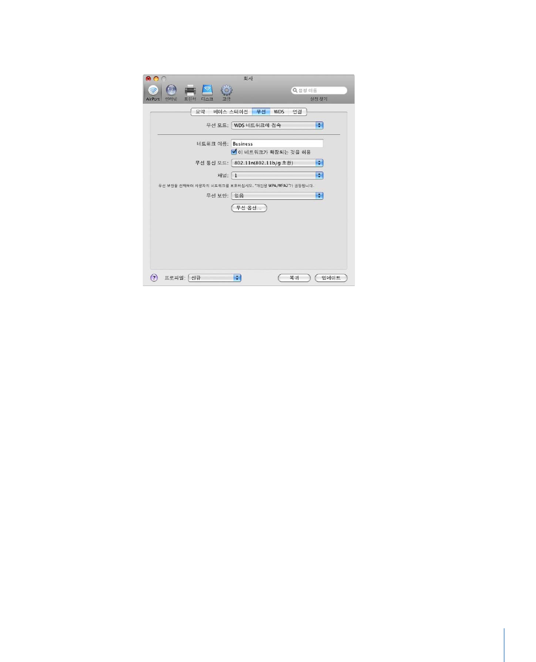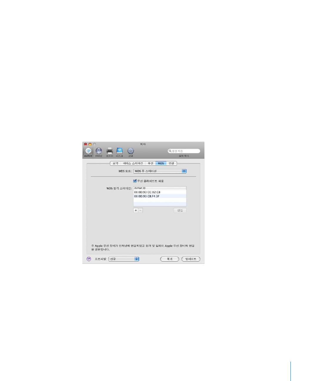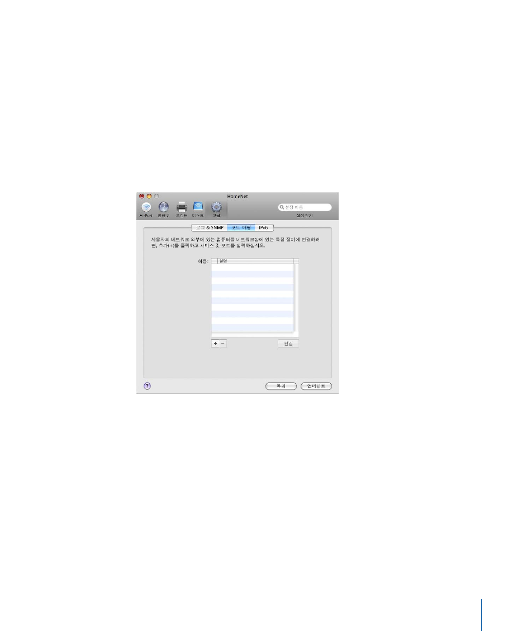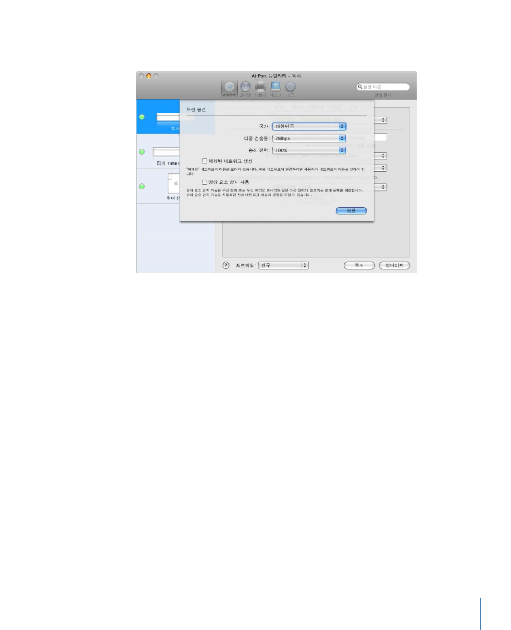- AirPort 네트워크 구성