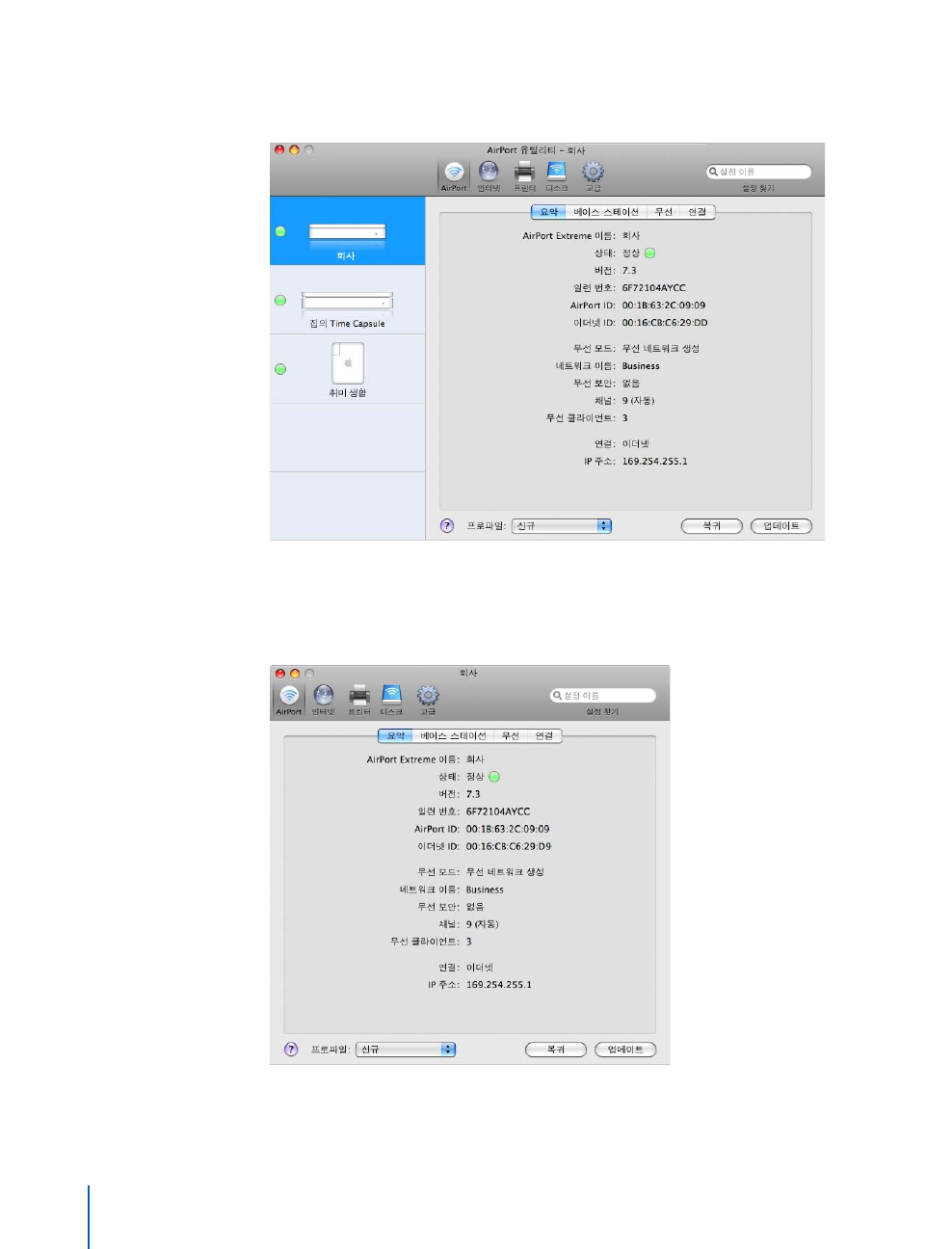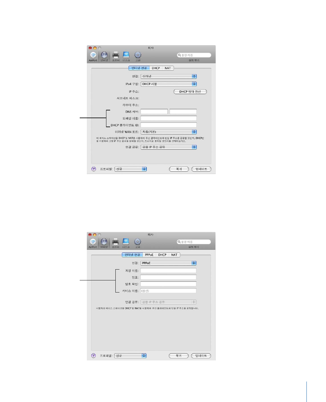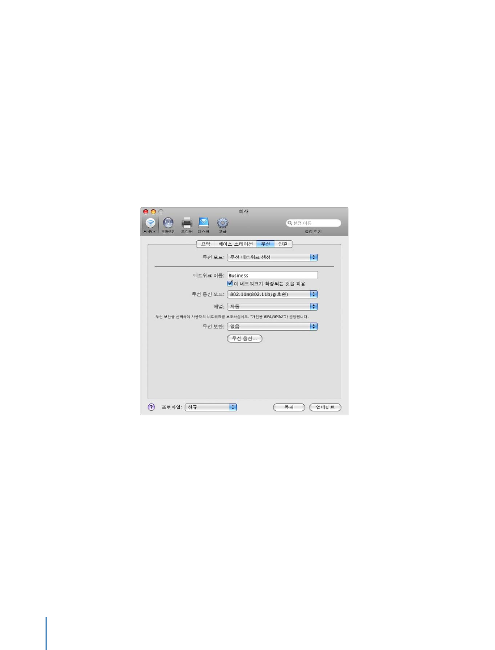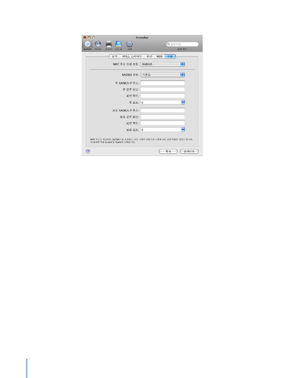 - AirPort 네트워크 구성