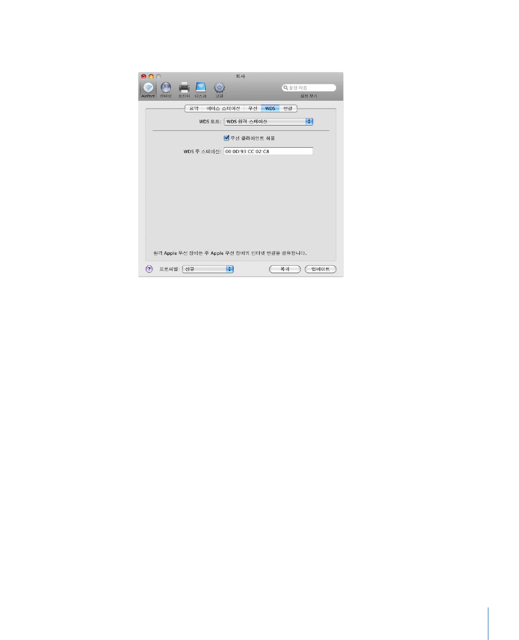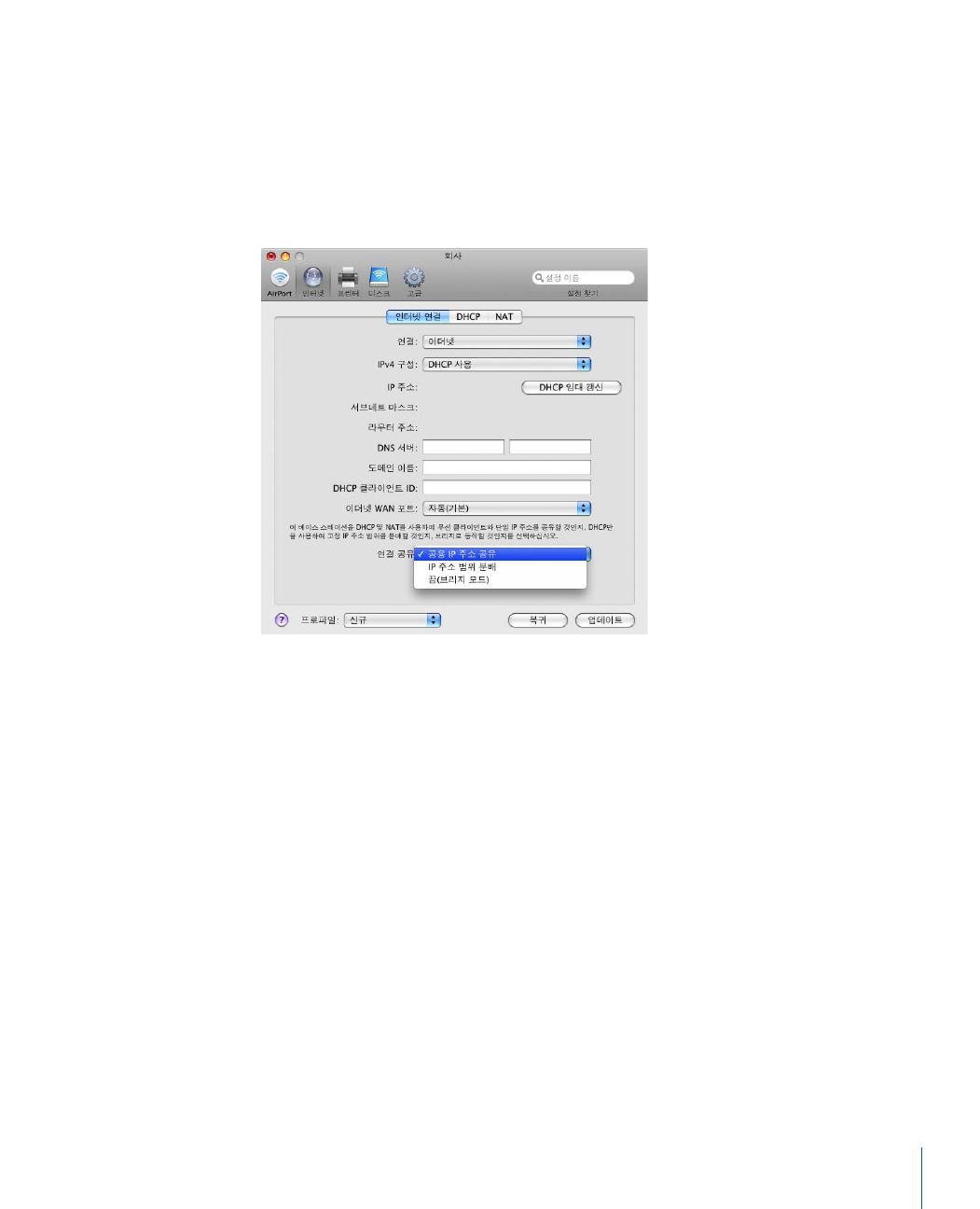 - AirPort 네트워크 구성하기