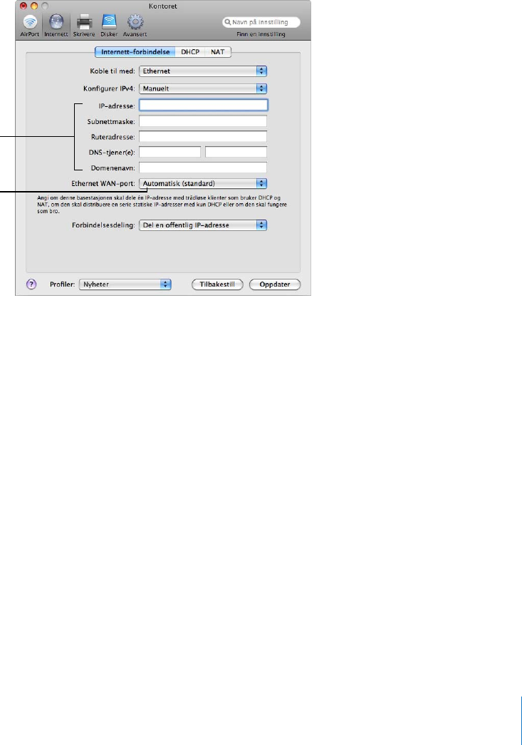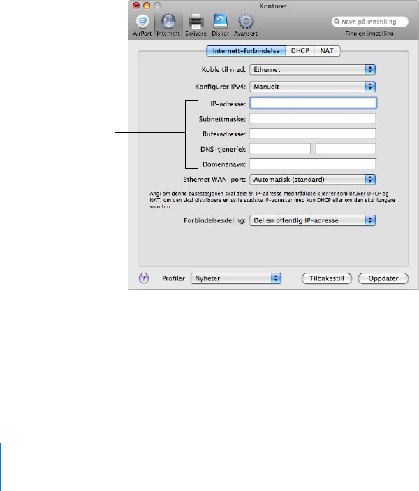 Konfigurere en trådløs Apple-enhet for Internett-tilgang med AirPort-verktøy