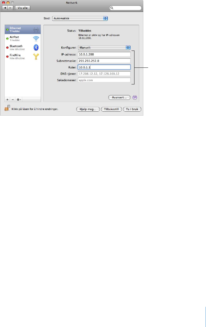 statisk adresse. Alle TCP/IP-meldinger inneholder adressen til målnettverket, i tillegg til
