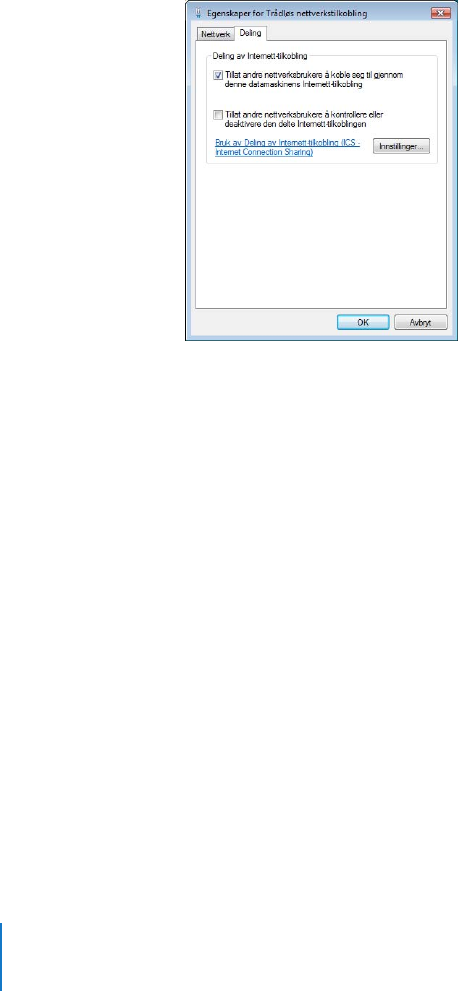 Konfigurere og dele Internett-tilgang