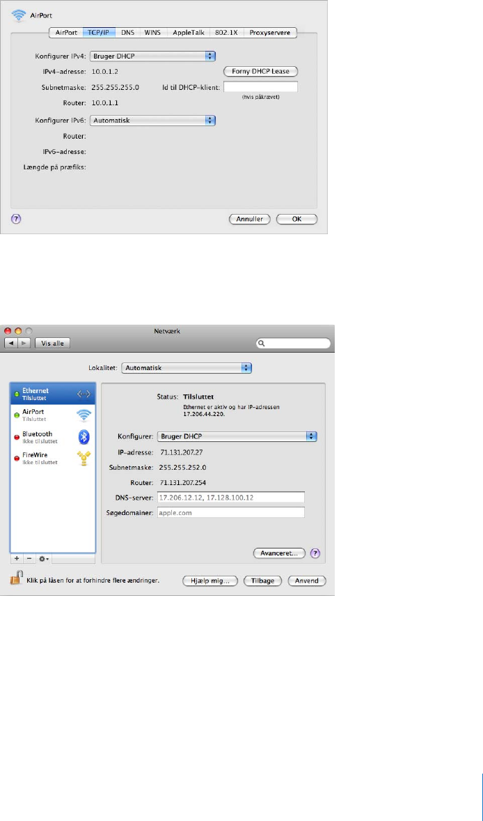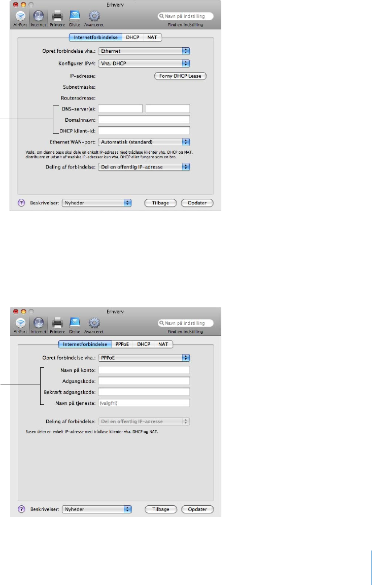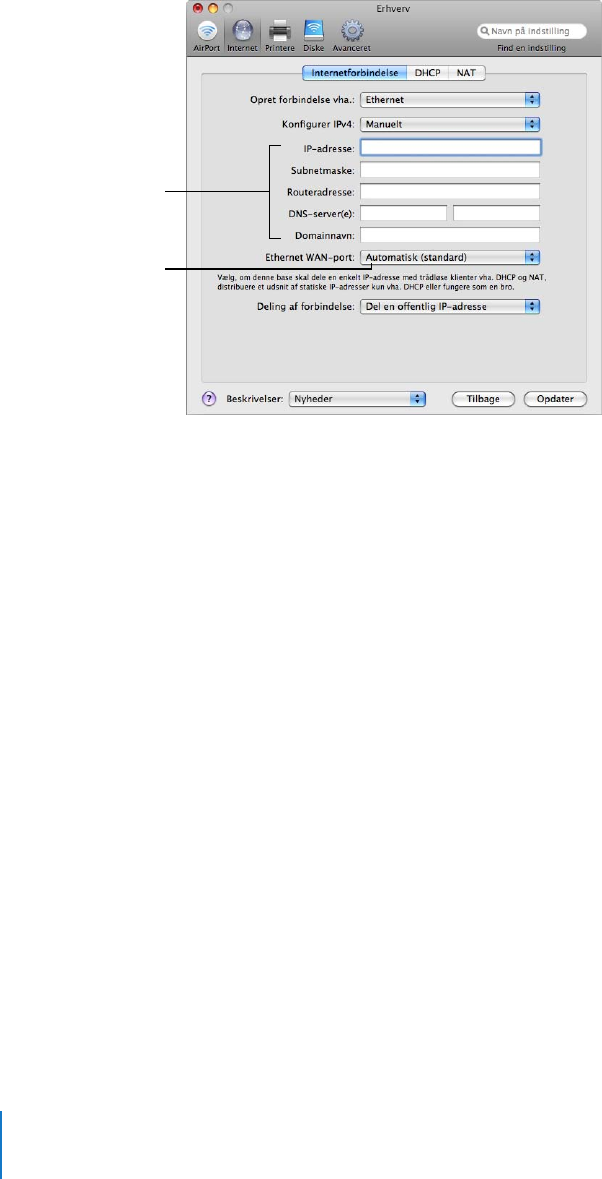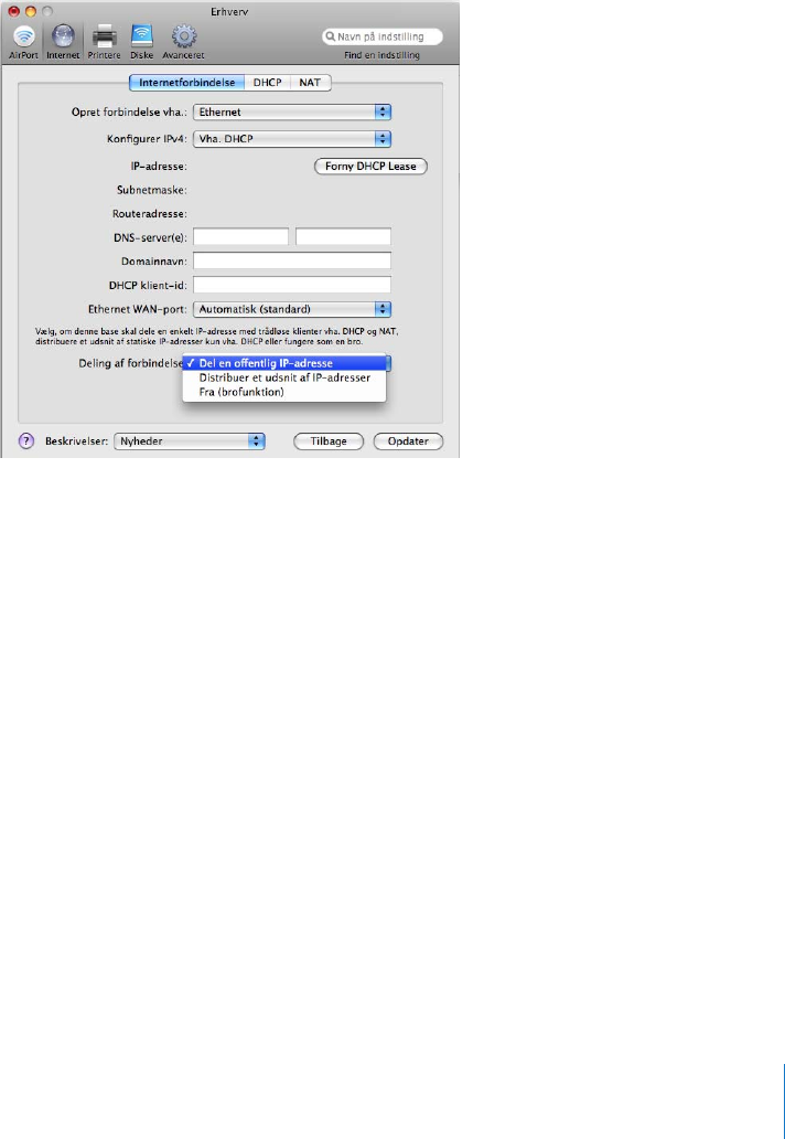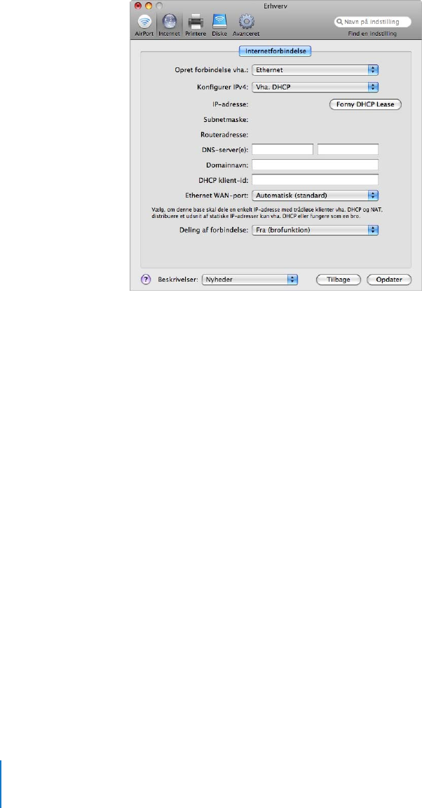 Konfigurere en trådløs Apple-enhed til Internetadgang vha. AirPort-værktøj