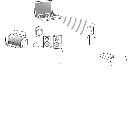 datorer i nätverket, spela iTunes-musik på stereon och dela en USB-skrivare.