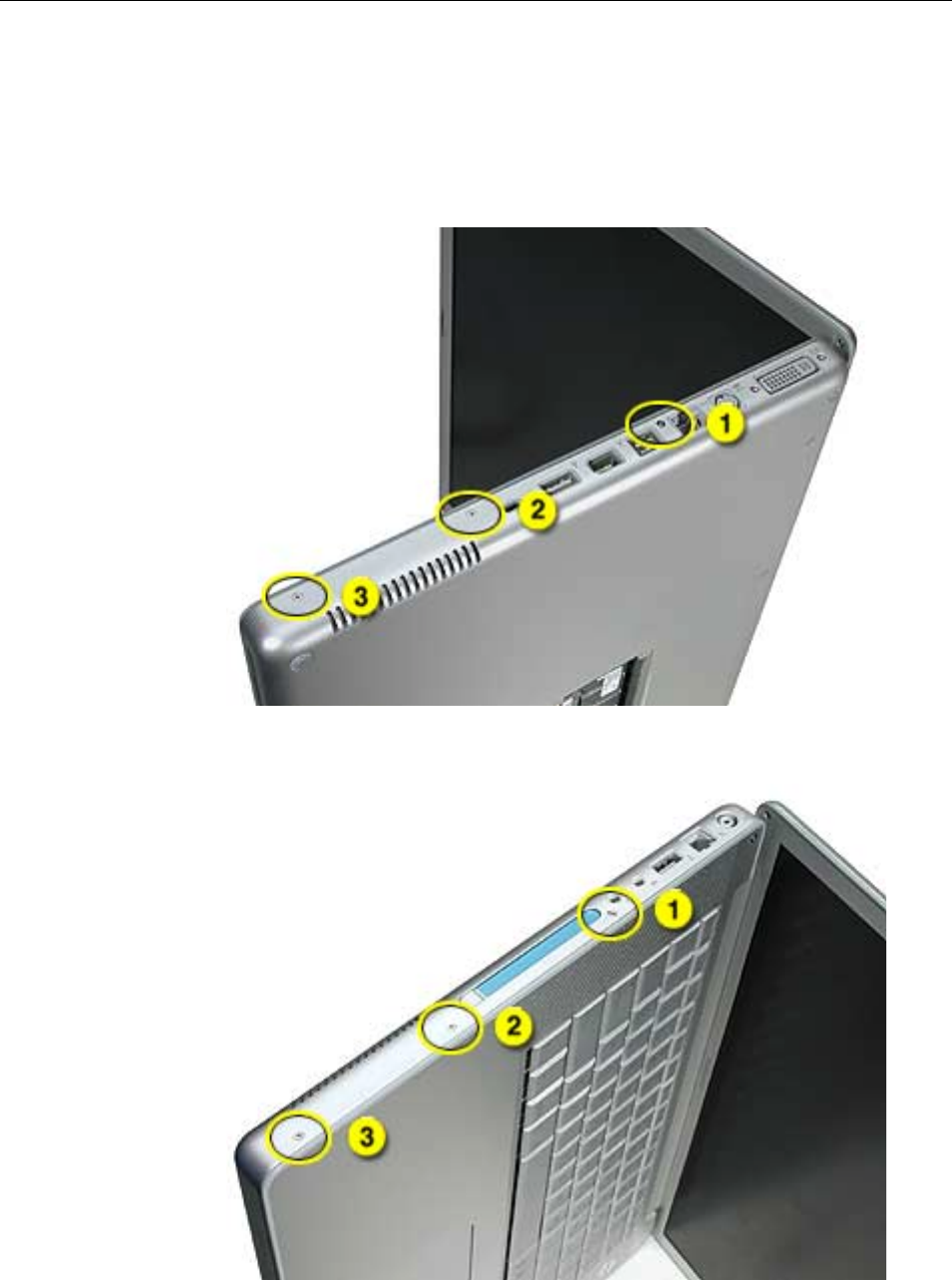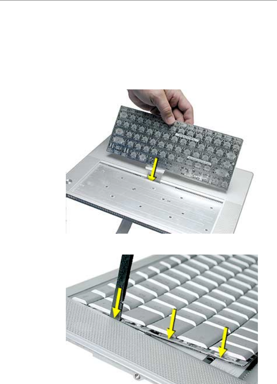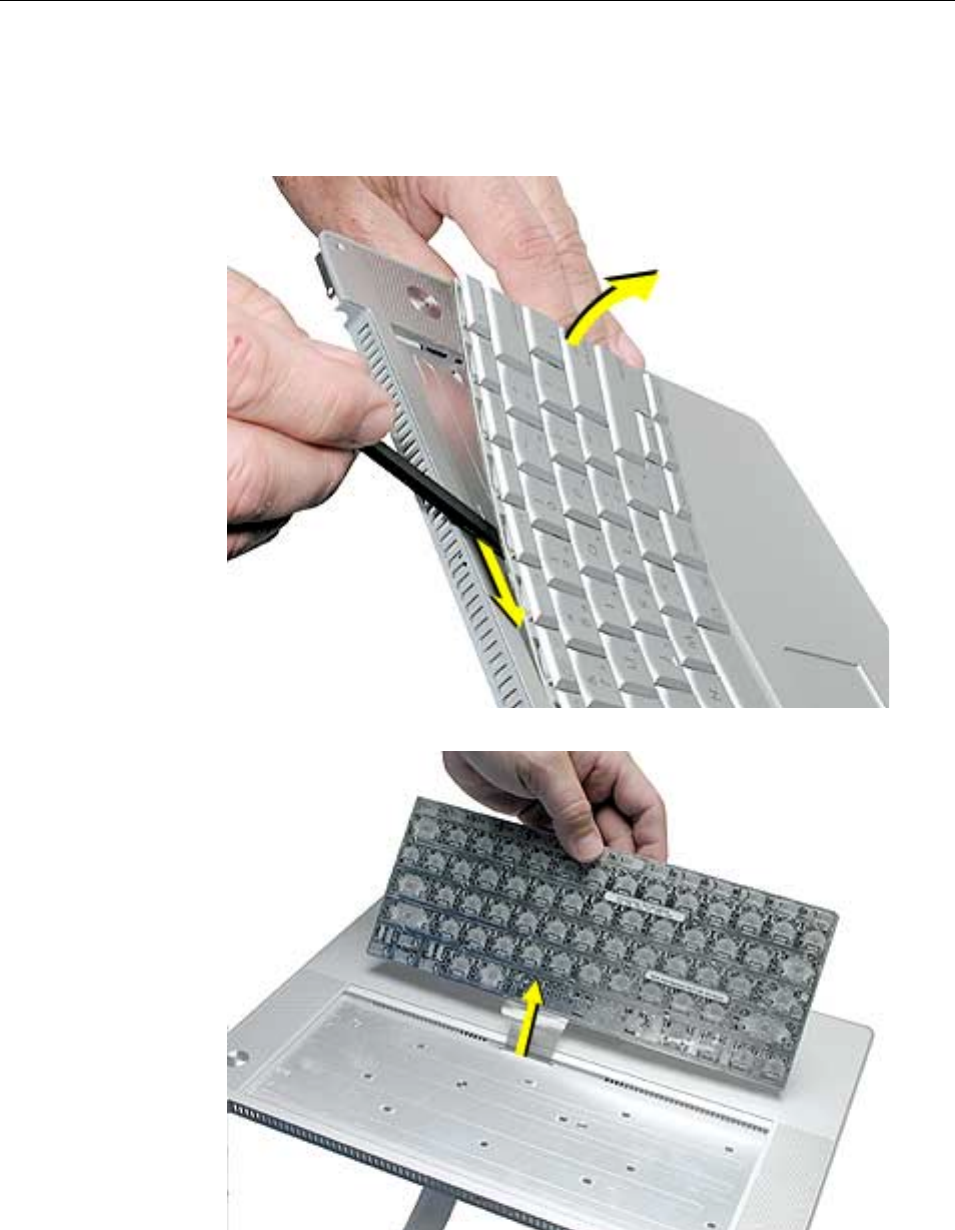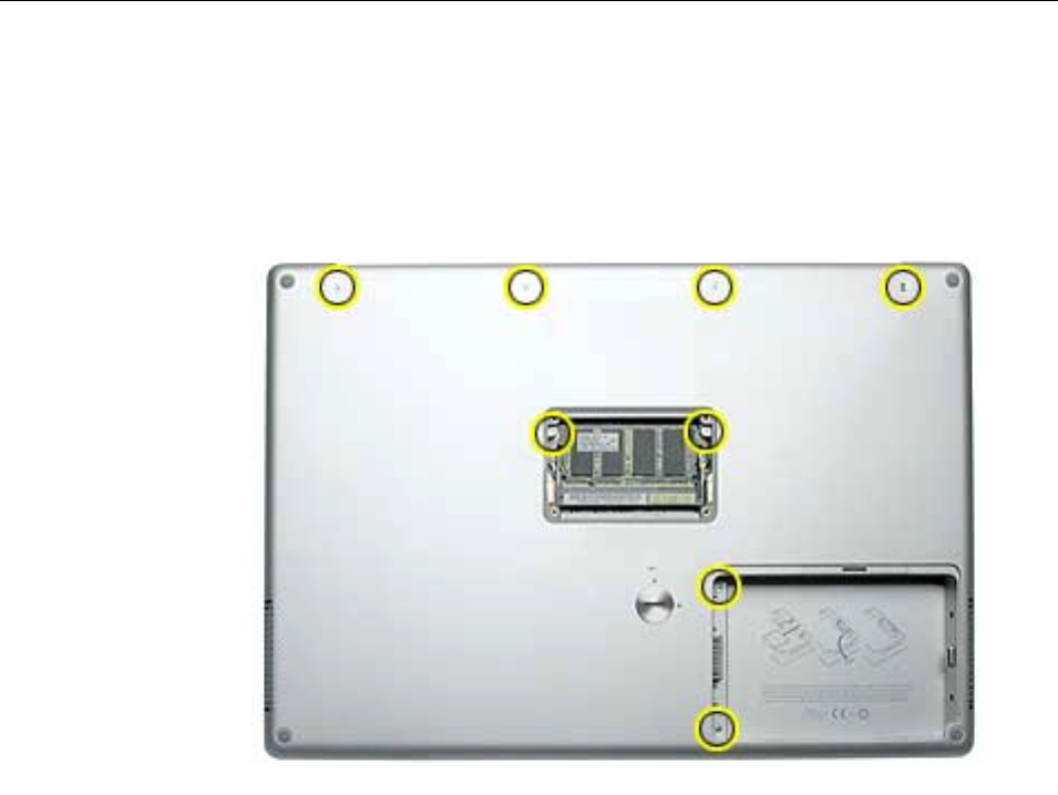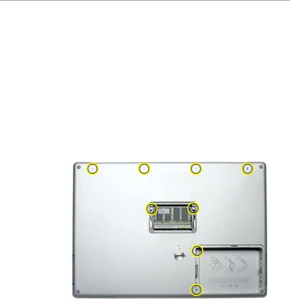 • The keyboard is secured with screws accessible from under the top case.