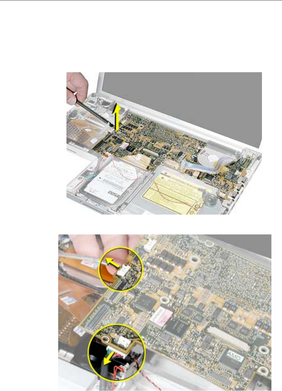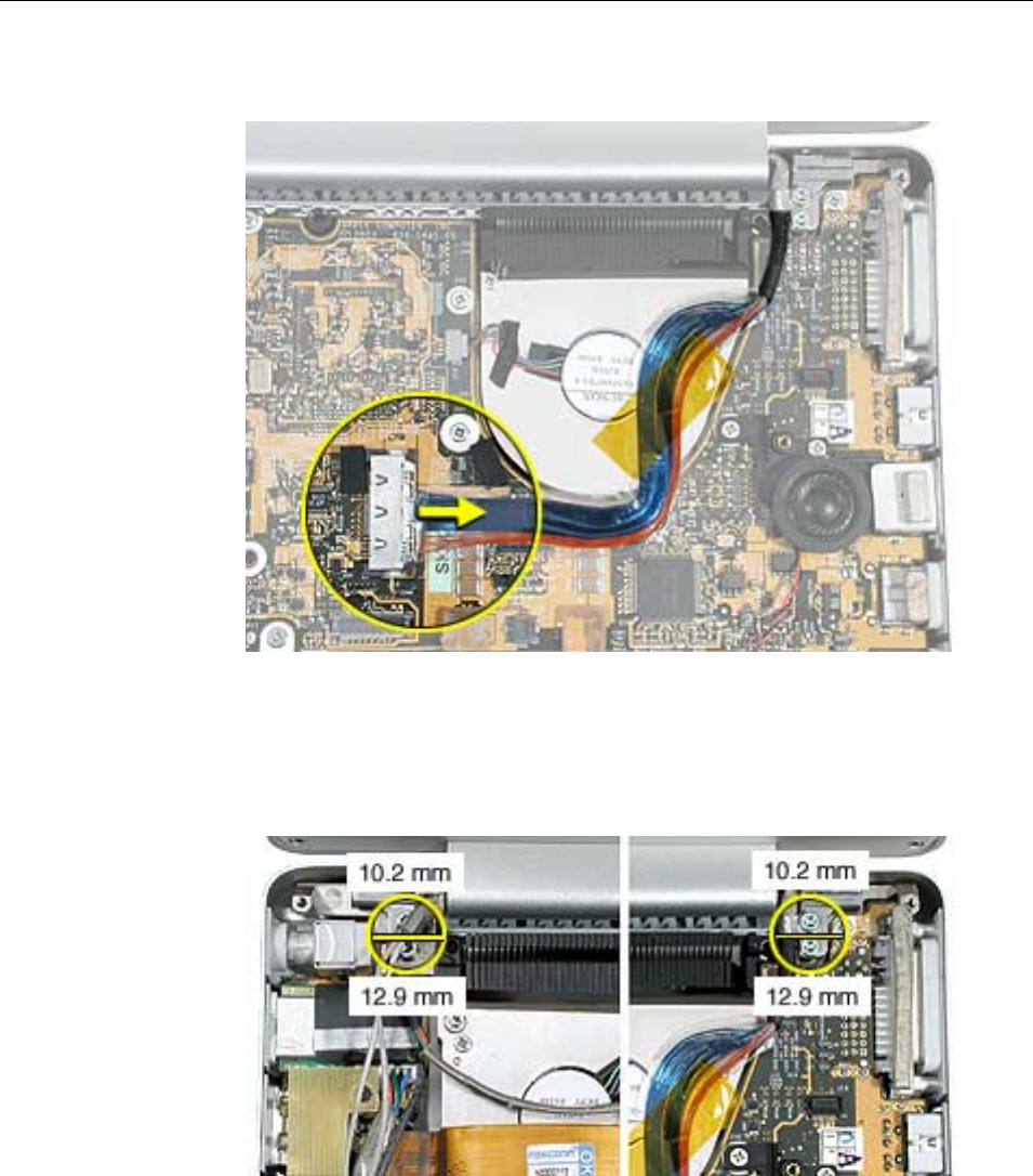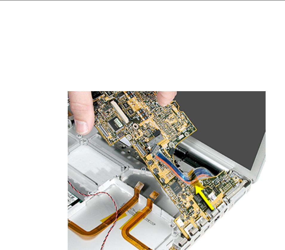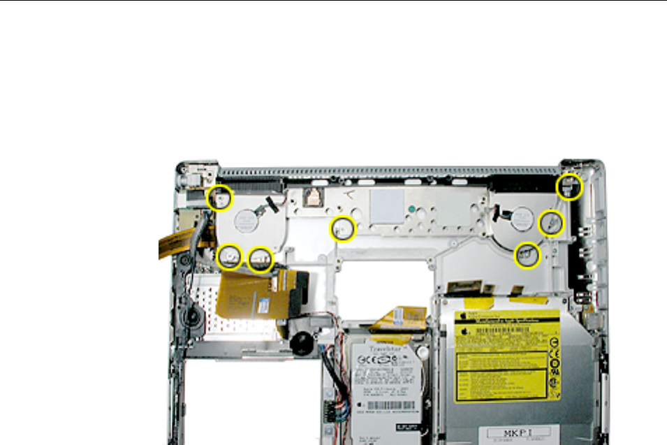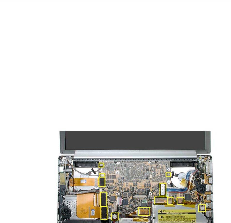 to the logic board. Carefully lift the top case to avoid pulling these connectors off