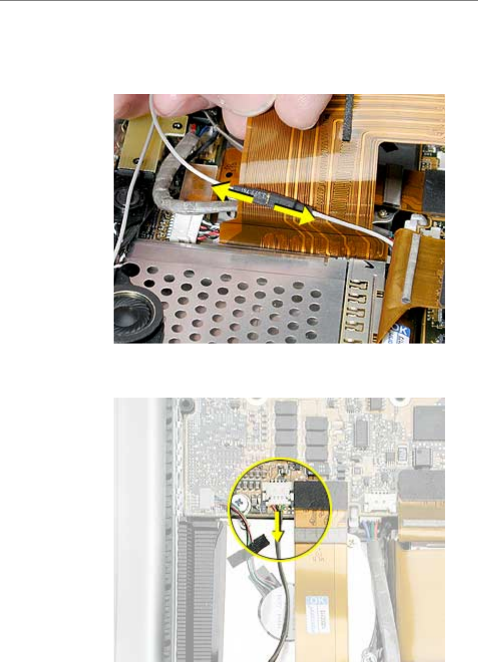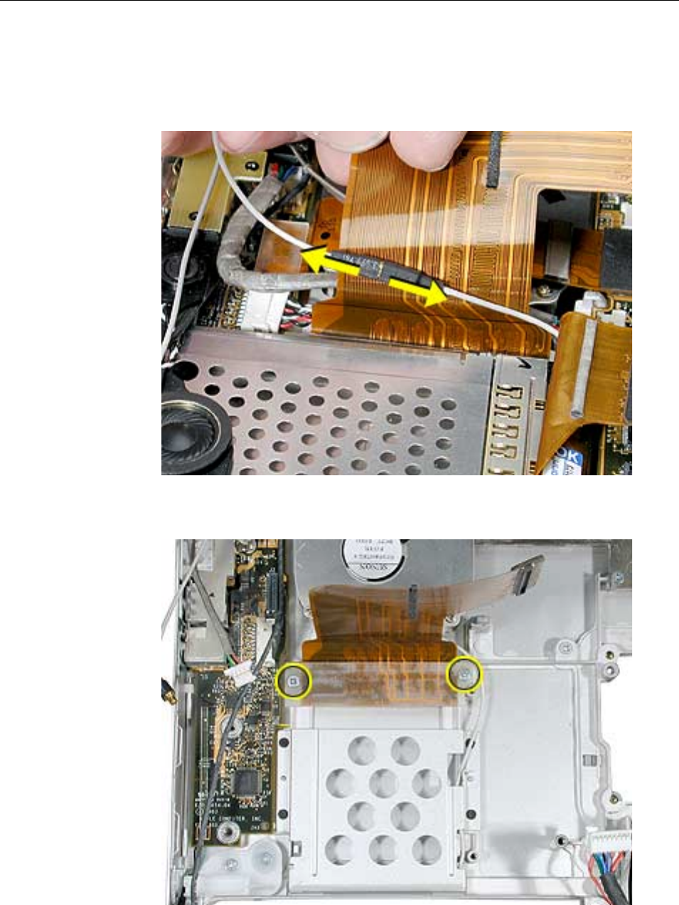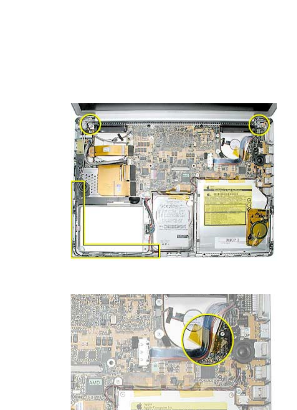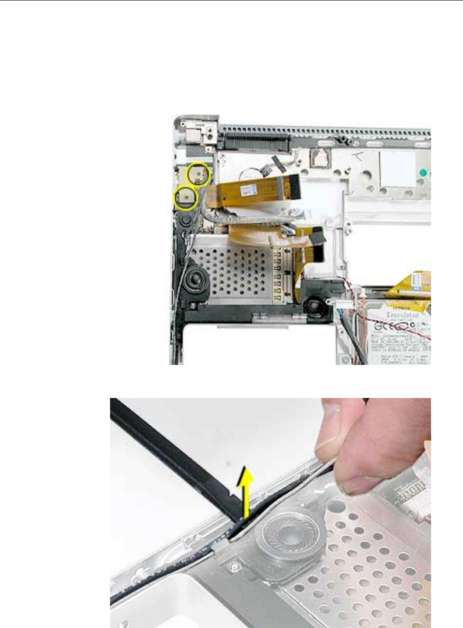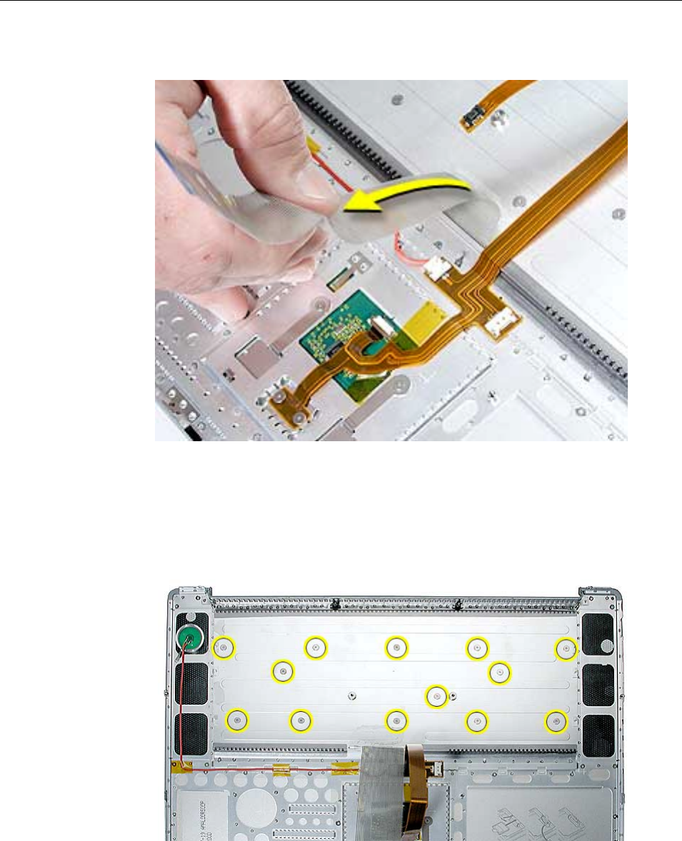 to the logic board. Carefully lift the top case to avoid pulling these connectors off