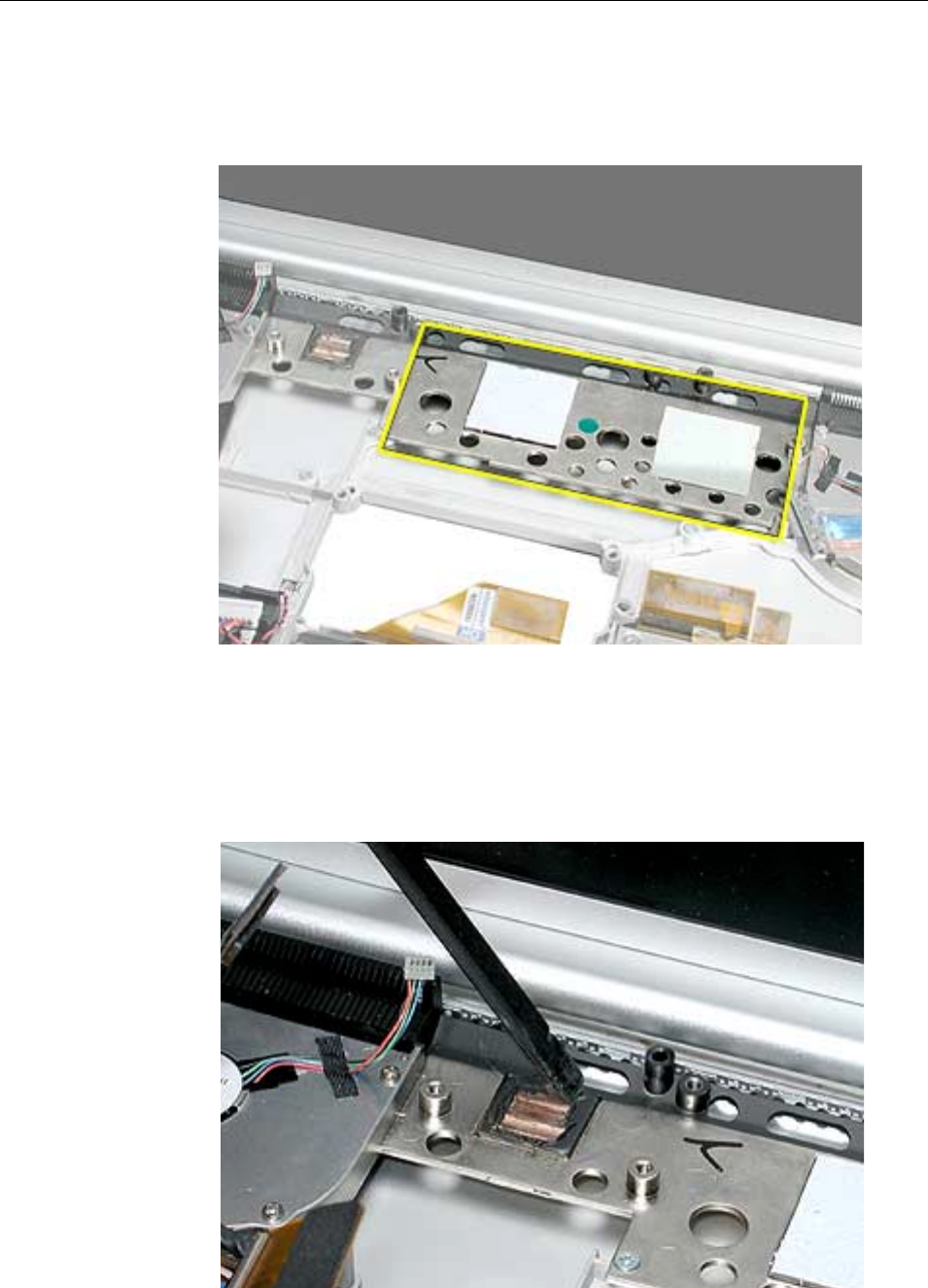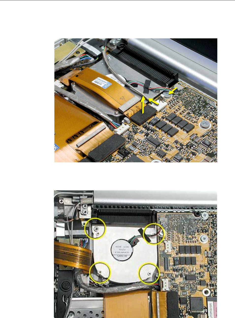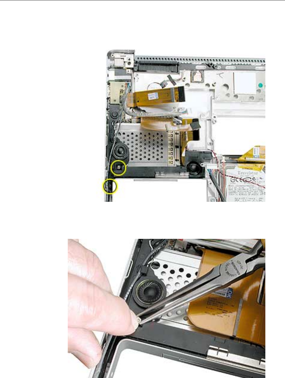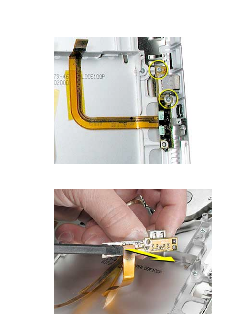 to the logic board. Carefully lift the top case to avoid pulling these connectors off