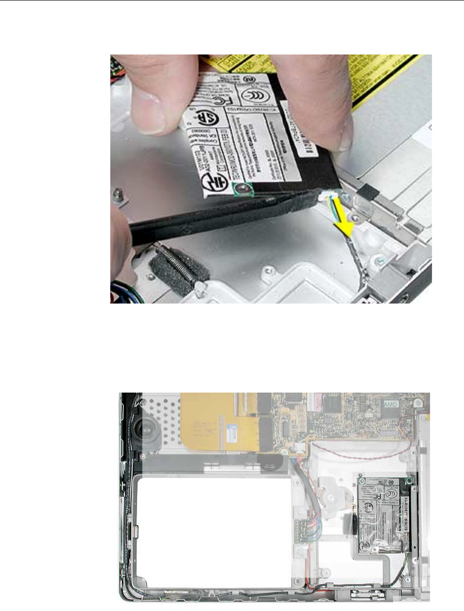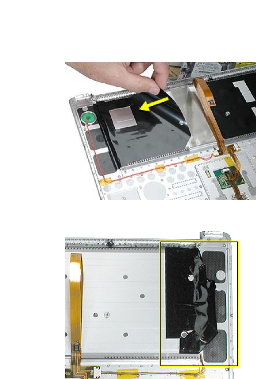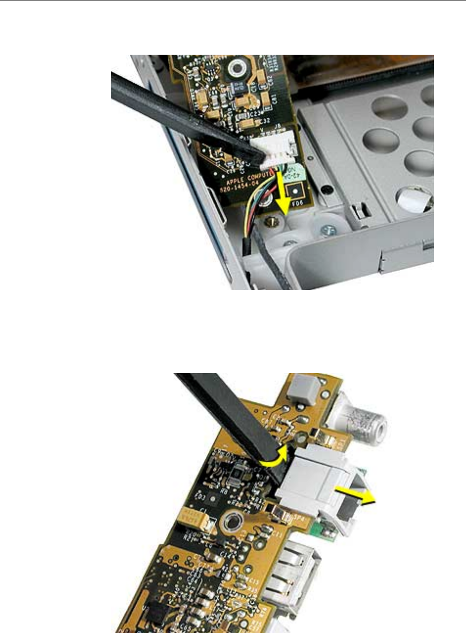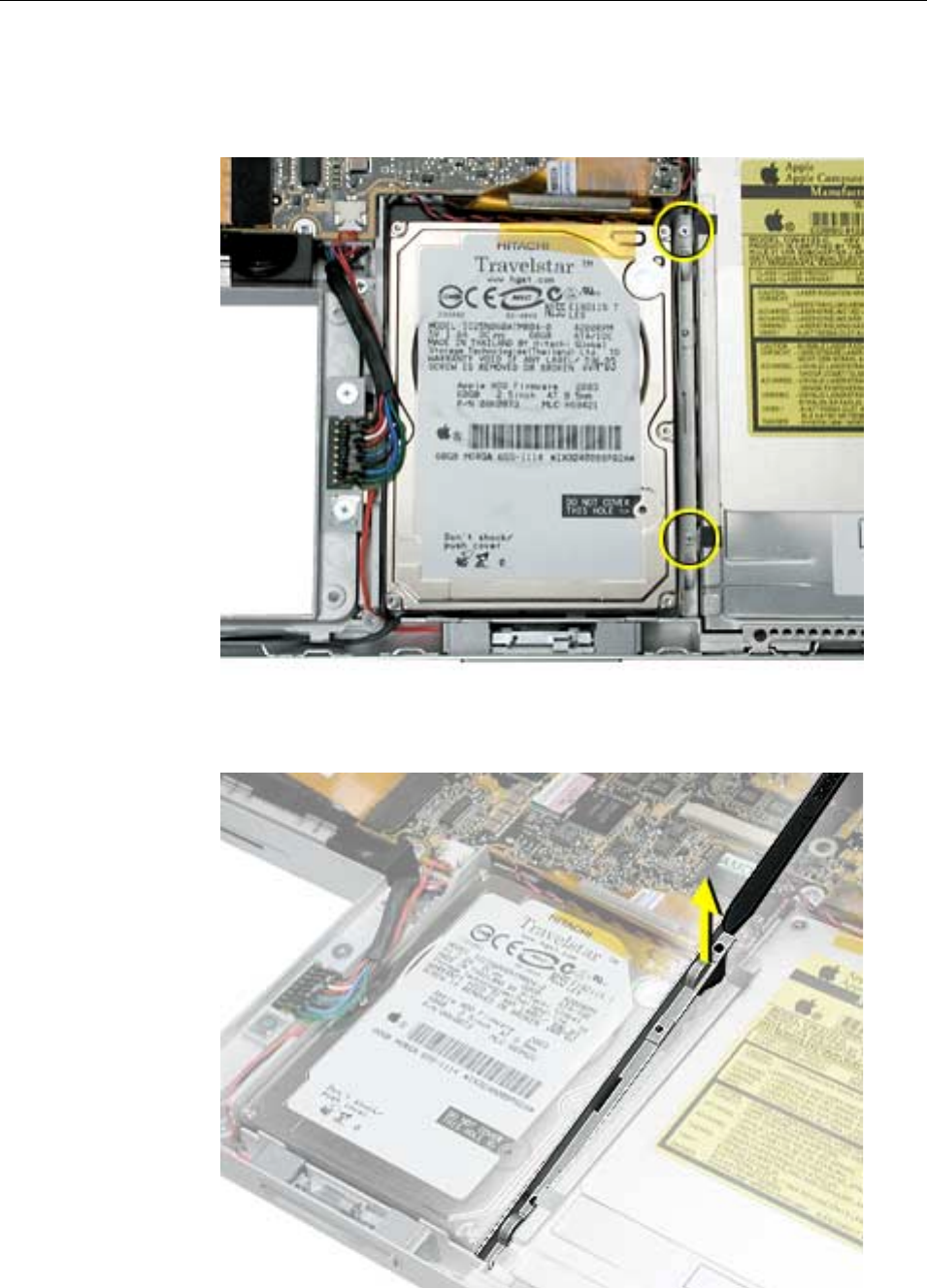 to the logic board. Carefully lift the top case to avoid pulling these connectors off
