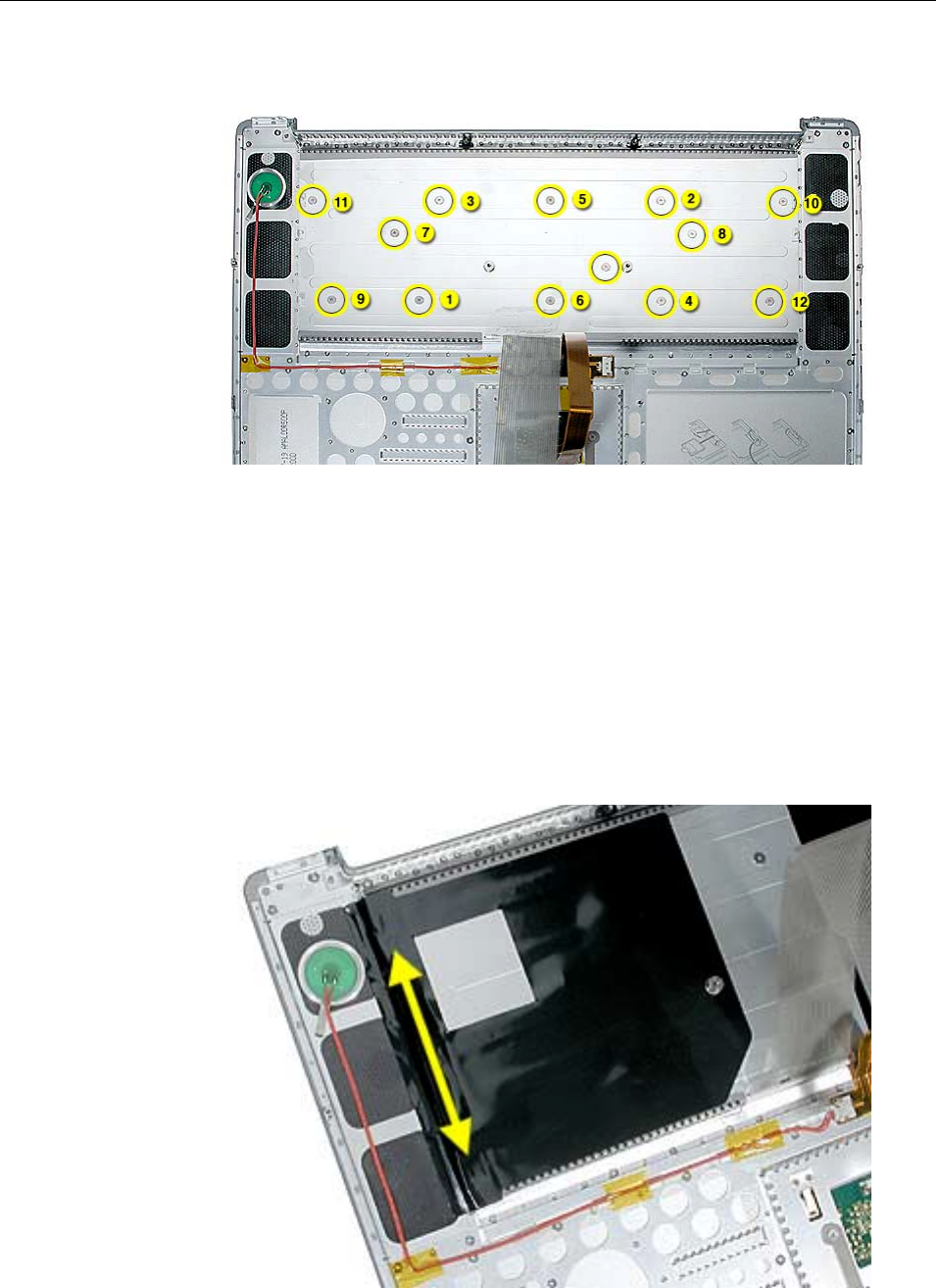 – There are two flex cables (keyboard and multifunction trackpad) from the top case