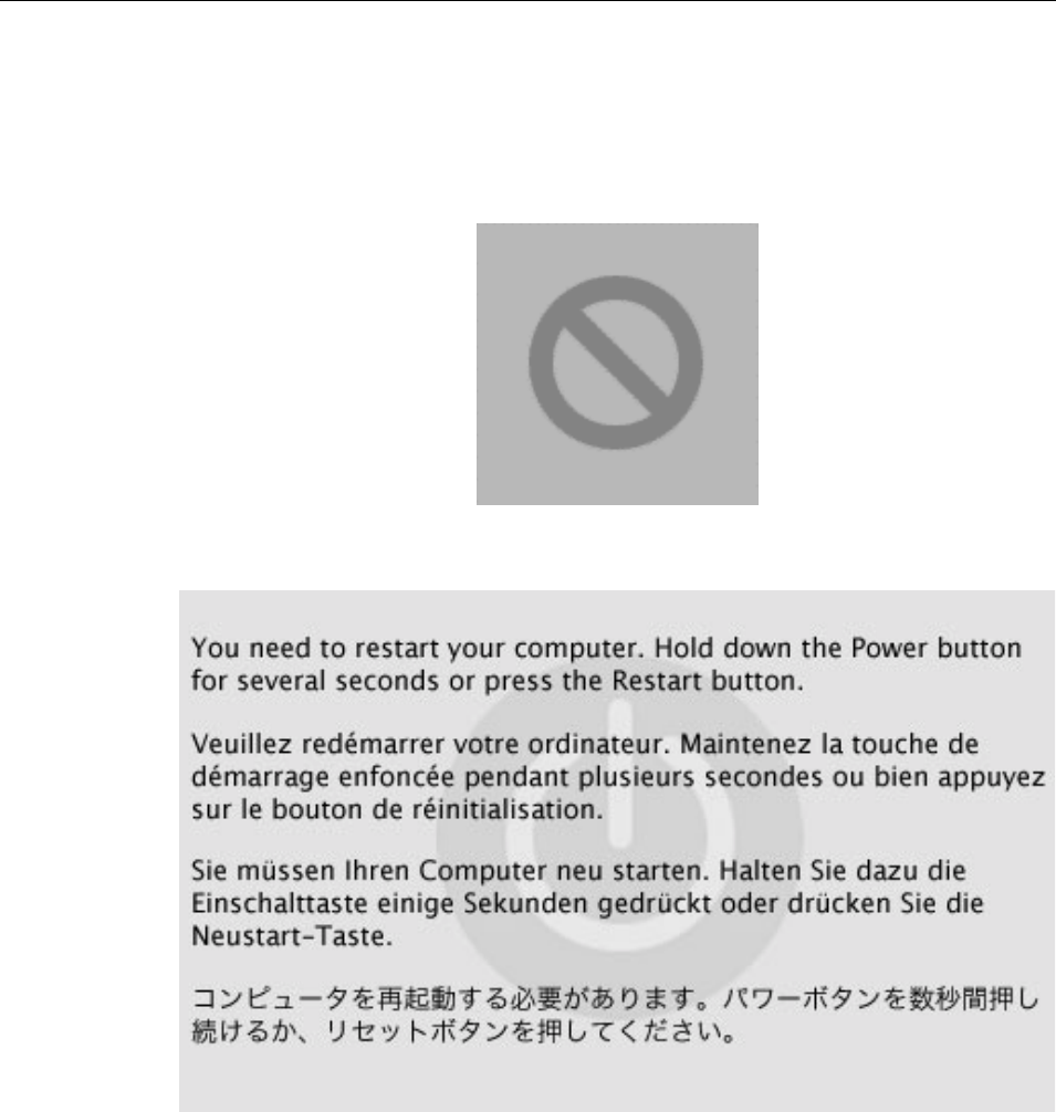 - Blue screen appears (a spinning disc cursor may also be visible), Prohibitory Sign appears, Resta...