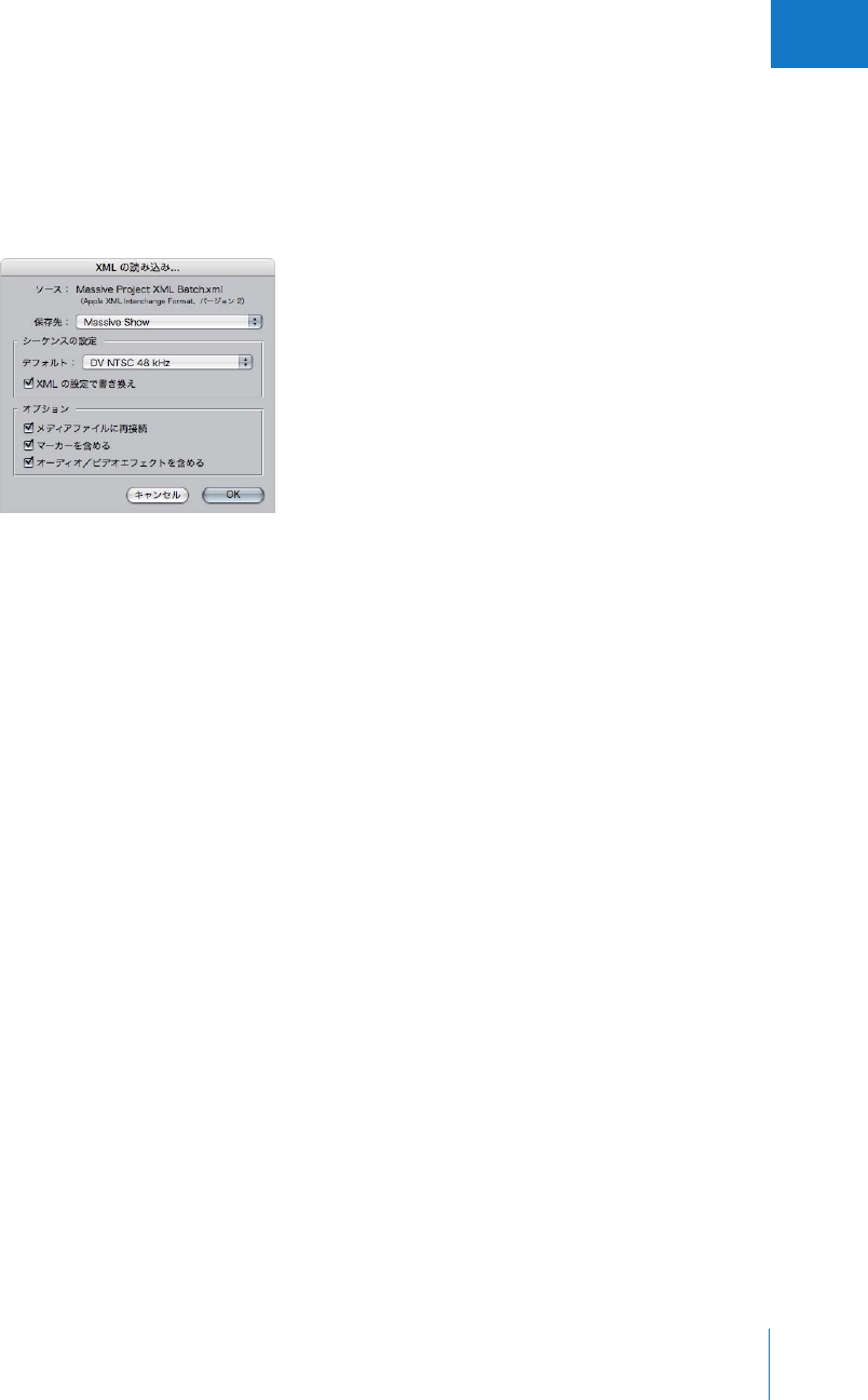 - 外部EDL、XMLおよびALEファイルを使って作業する