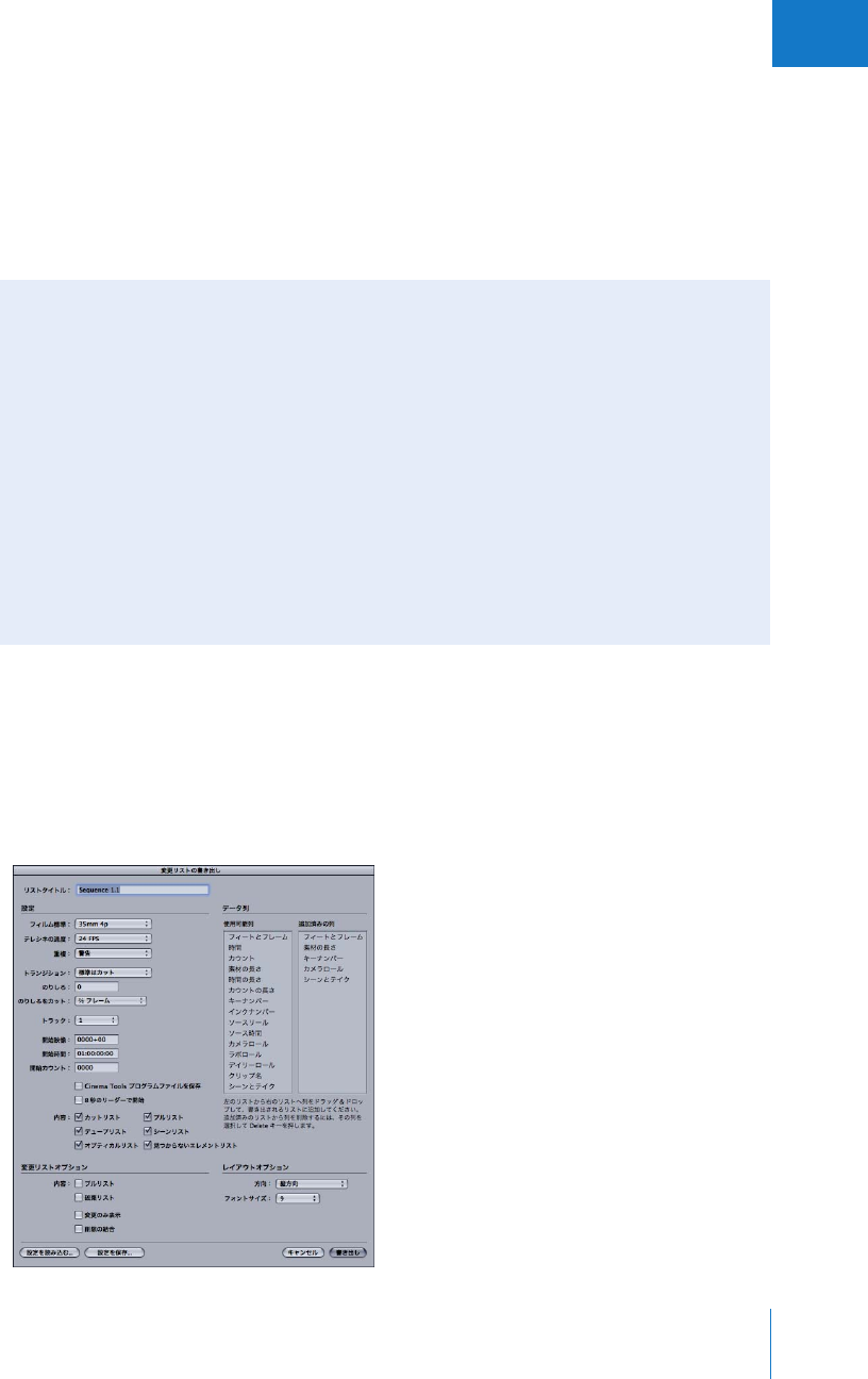 - フィルムリストと変更リストを生成する