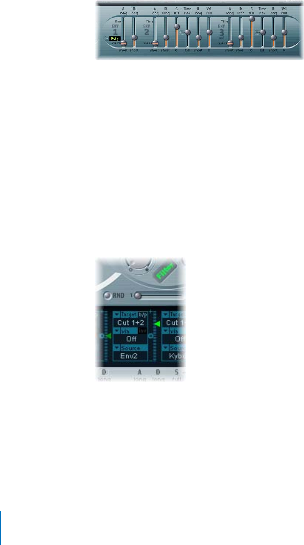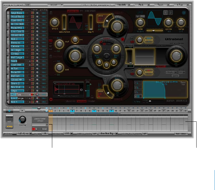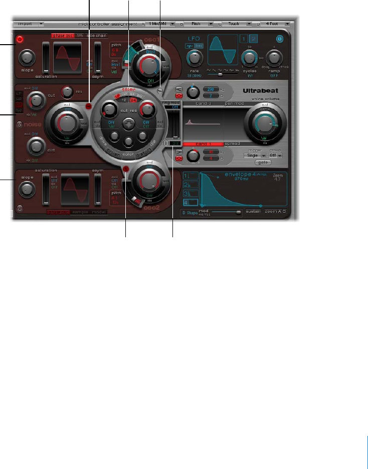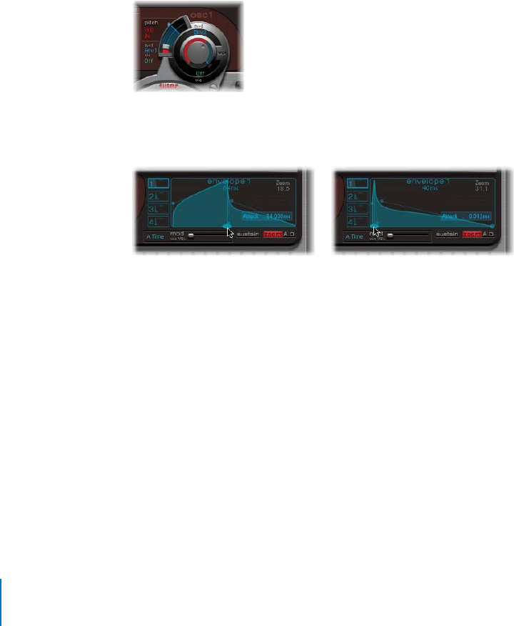 - Bajos y sintetizadores percusivos con dos fases de caída de filtro