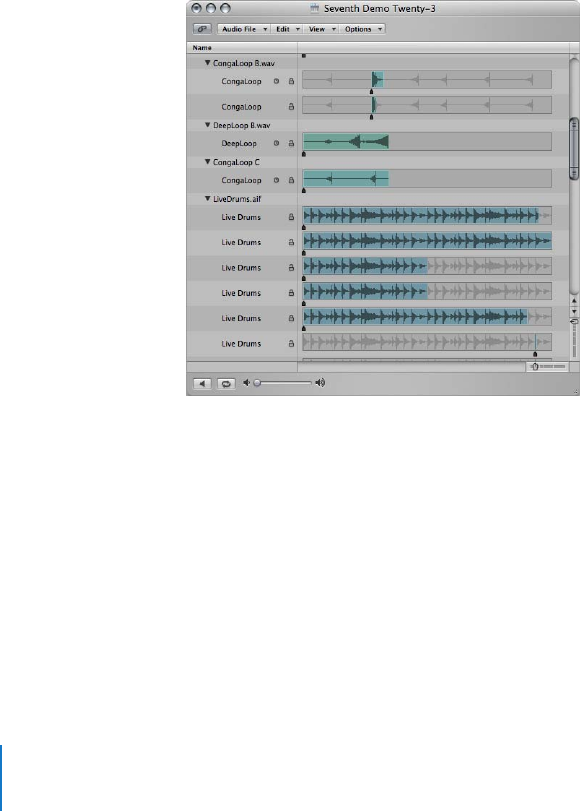 waveform of audio regions 69