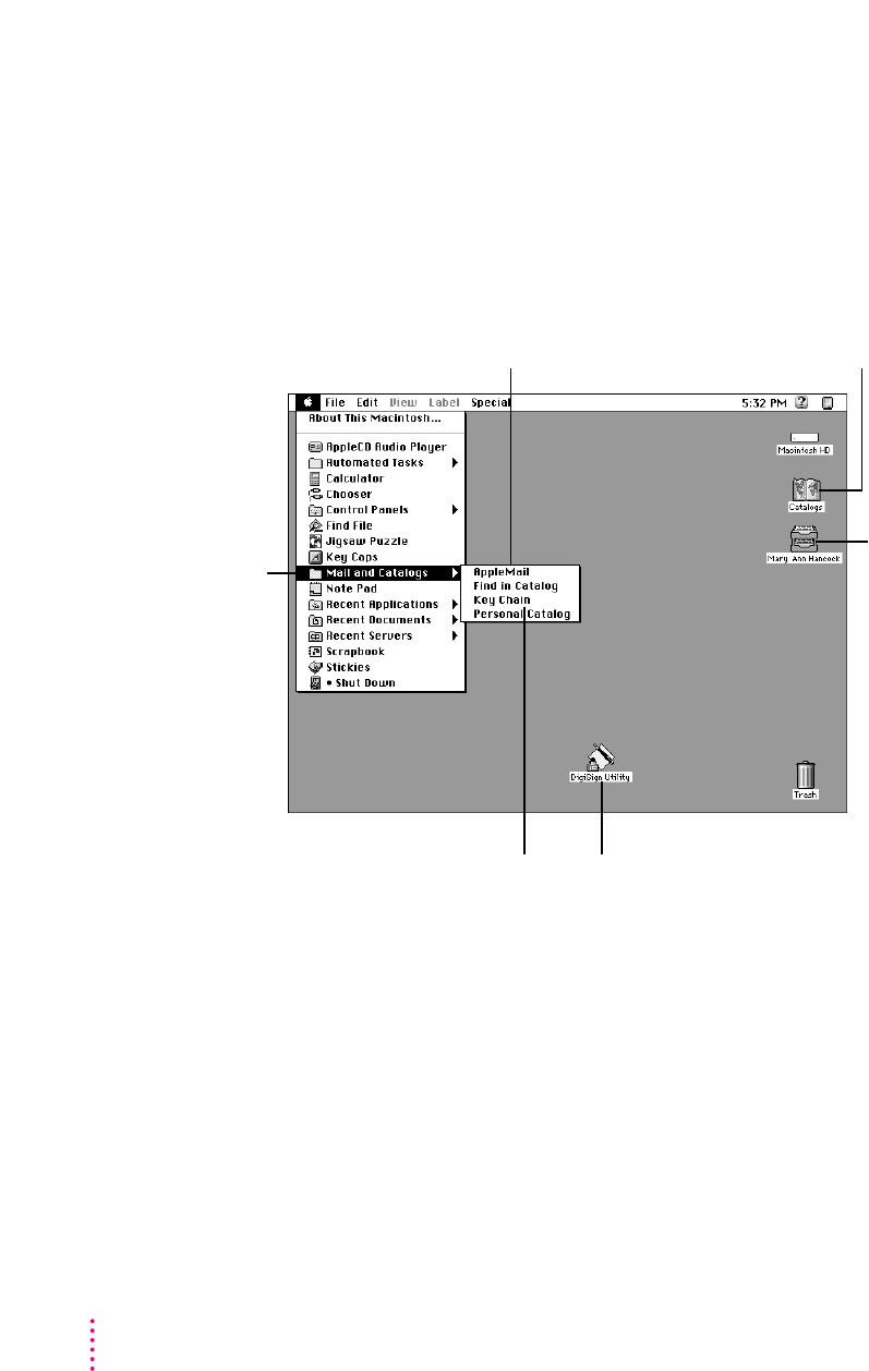 AppleMail, AppleScript, At Ease, Balloon Help, ColorSync, Finder, PlainTalk, PowerShare,