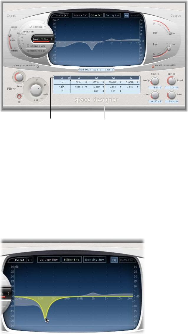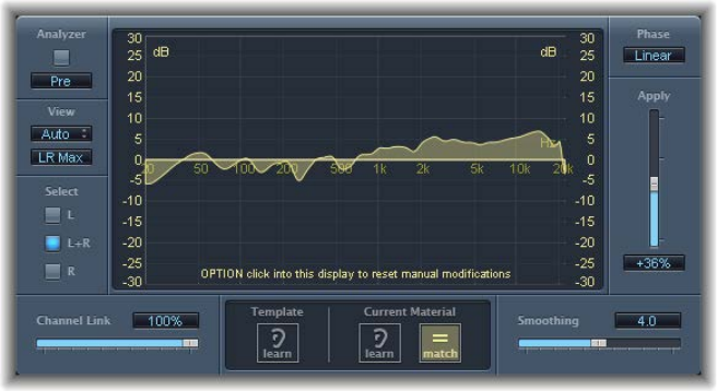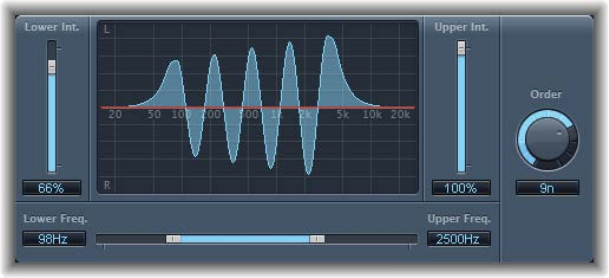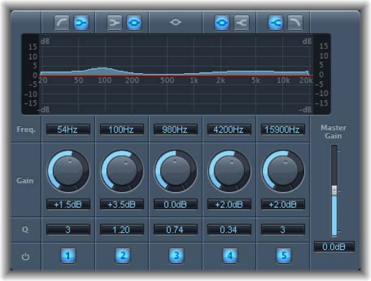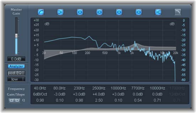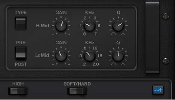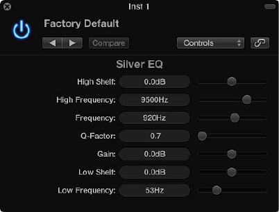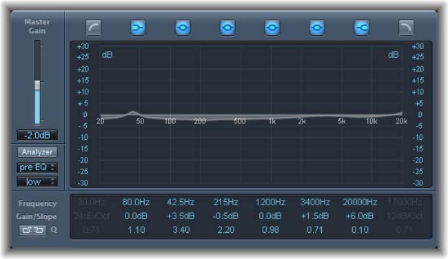 •EQ pop-up menu: Contains the following EQ models: British1, British2, American, and Modern.