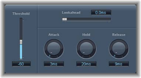 Silver Gate is a simplied version of the Noise Gate plug-in. See Use Noise Gate on page 97.