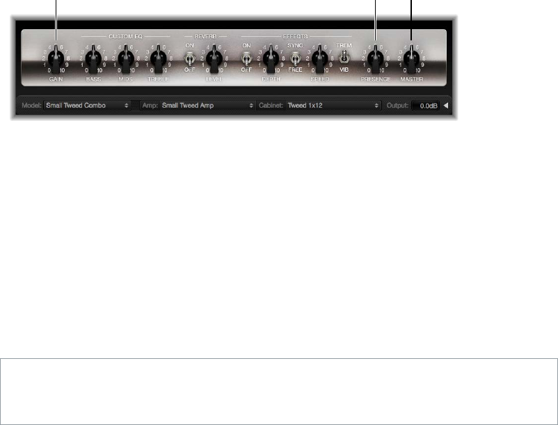 •Master knob: Sets the output volume of the amplier—going to the speaker. For tube