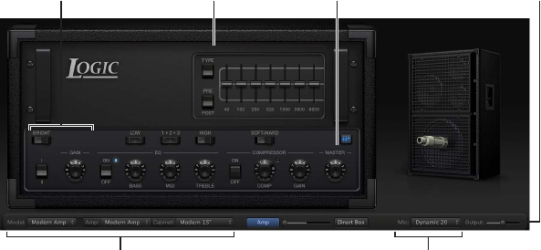 •DI Box: This option bypasses the speaker simulation section.