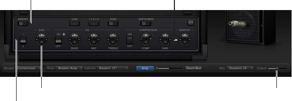 •Amp-EQ Link button: Located between the Amp and EQ pop-up menus, links these pop-up
