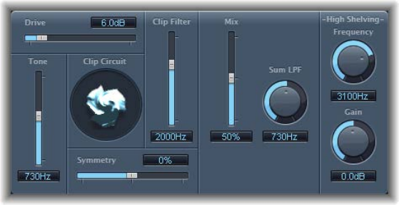 the British Clean amp model, the maximum Gain setting produces a powerful crunch sound.