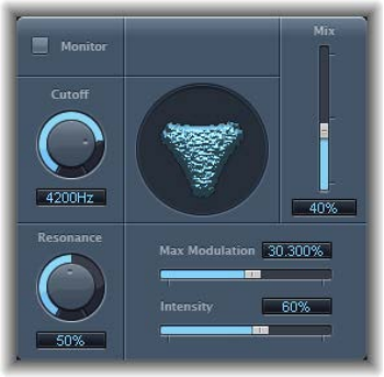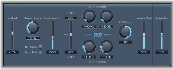 You can use the pop-up menu to choose either Tremolo, which modulates the amplitude or