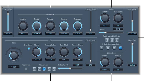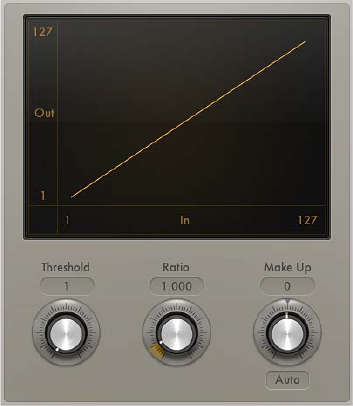 •Ratio slider and eld: Drag to set the ratio by which the signal is reduced, when it exceeds