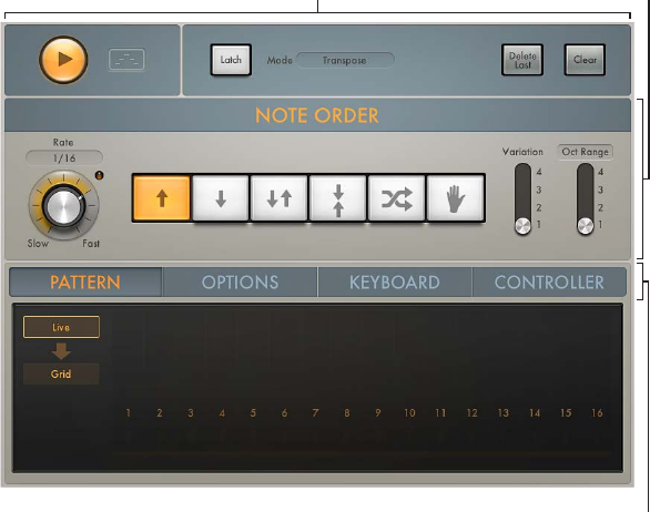 •FX pop-up menu: You can choose either Tremolo or Vibrato.