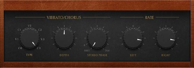 •Depth knob: Sets the intensity of the modulation.