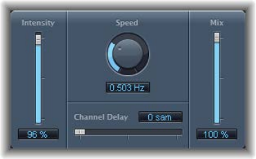 •Speed knob: Sets the speed of the modulation in Hertz. Lower settings produce a smooth and