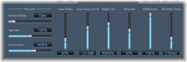 •Reverb pop-up menu: Choose one of the three types of spring reverb.